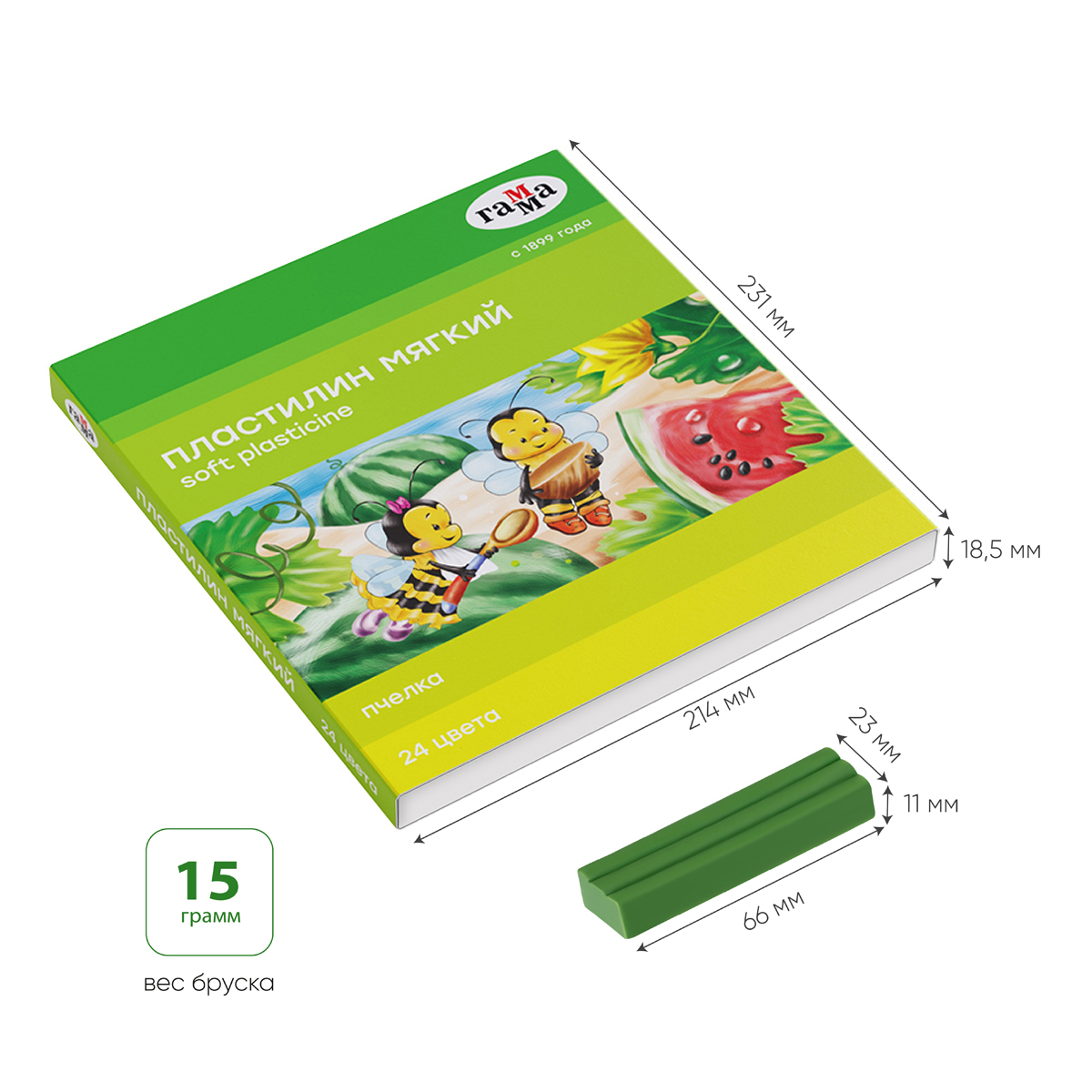 О товаре «Пластилин восковой ГАММА "Пчелка", 24 цвета, 360 г, со стеком, картонная упаковка, 190820201»