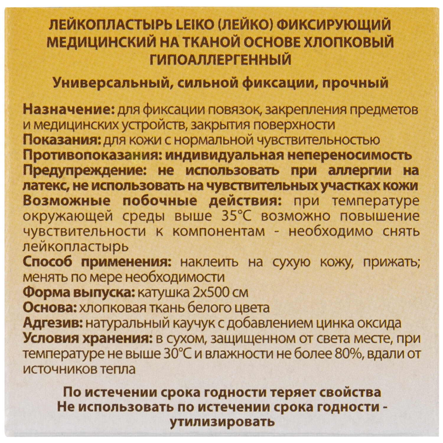 О товаре «Пластырь фиксирующий Leiko plaster 2x500 см тканая основа»