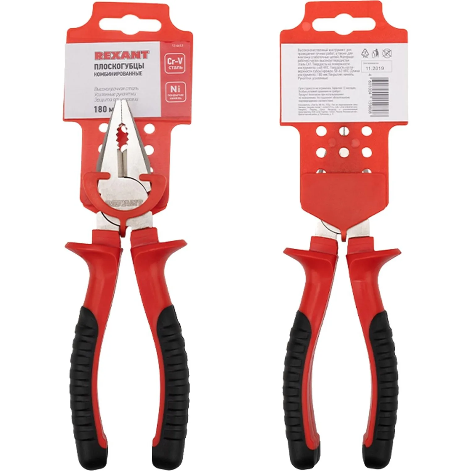 О товаре «Плоскогубцы комб. 180мм никел., двухкомпонентные рукоятки REXANT 12-4612»