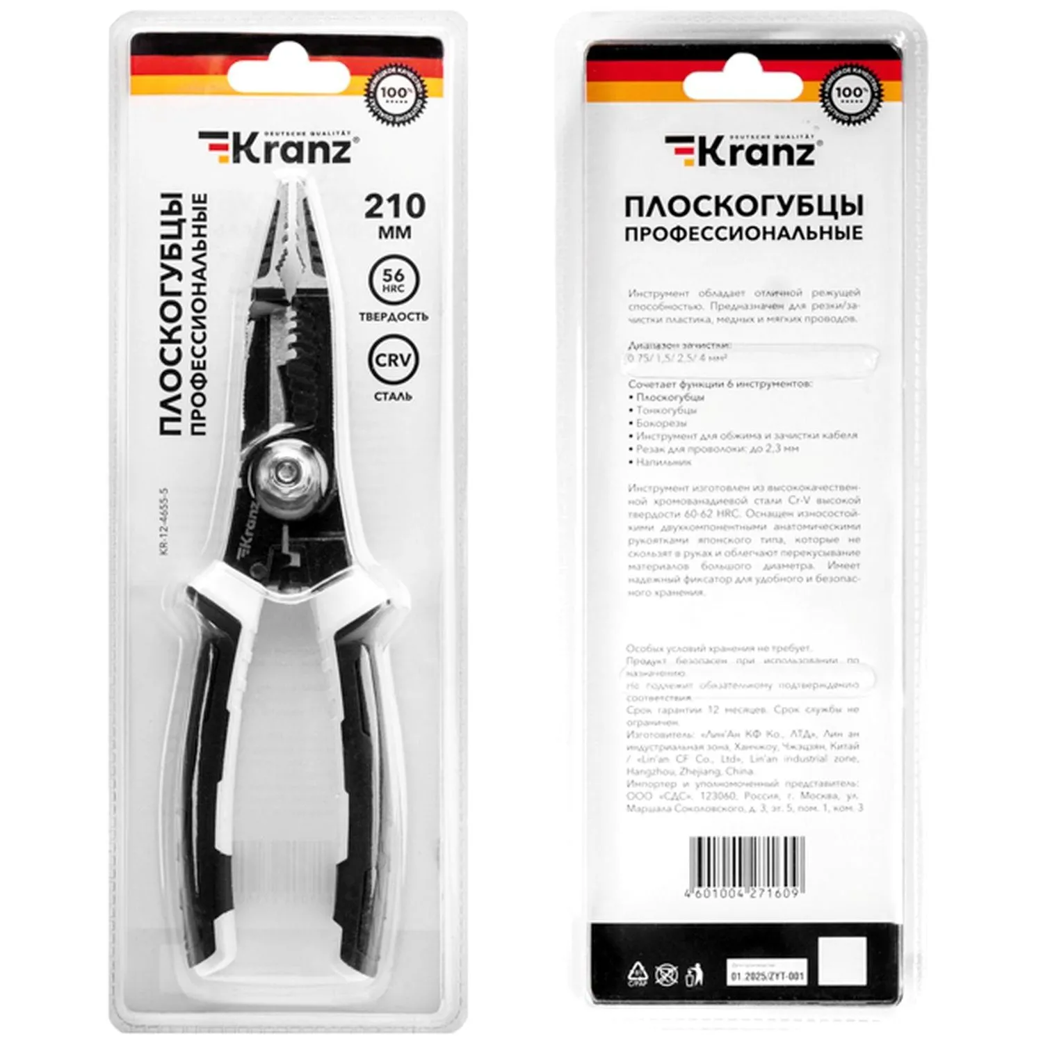 Плоскогубцы Kranz (KR-12-4655-5) длиной 200 мм — это инструмент на все случаи жизни, включающий в себя: плоскогубцы, тонкогубцы, бокорезы, инструмент для зачистки кабеля, резак для проводов, напильник, инструмент для обжима клемм. Используются для ремонта автомобилей, мотоциклов, механизмов и т.д. Применяются для монтажных работ, а также в быту.