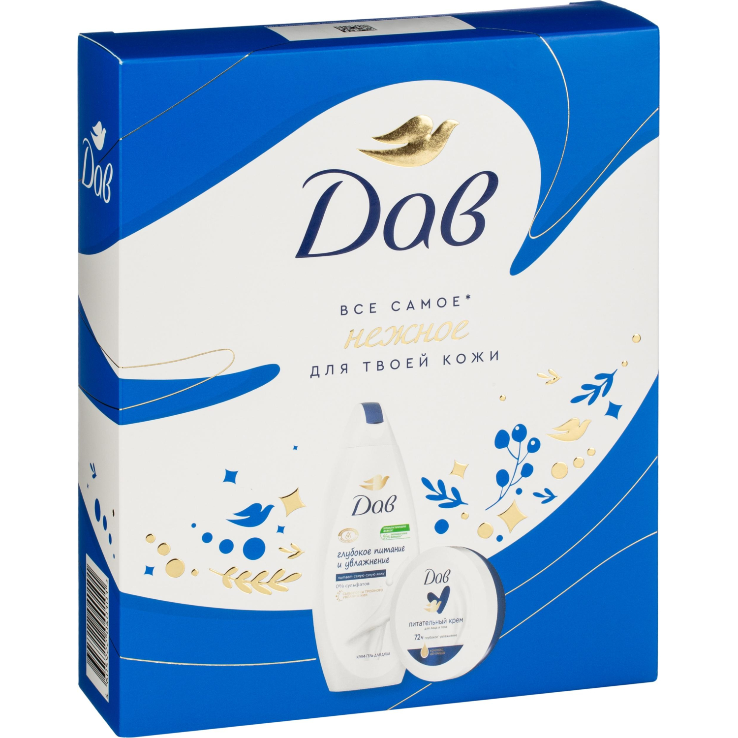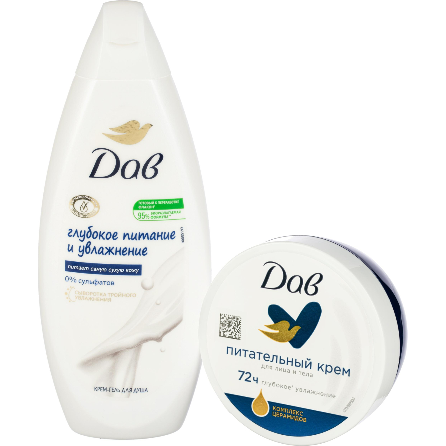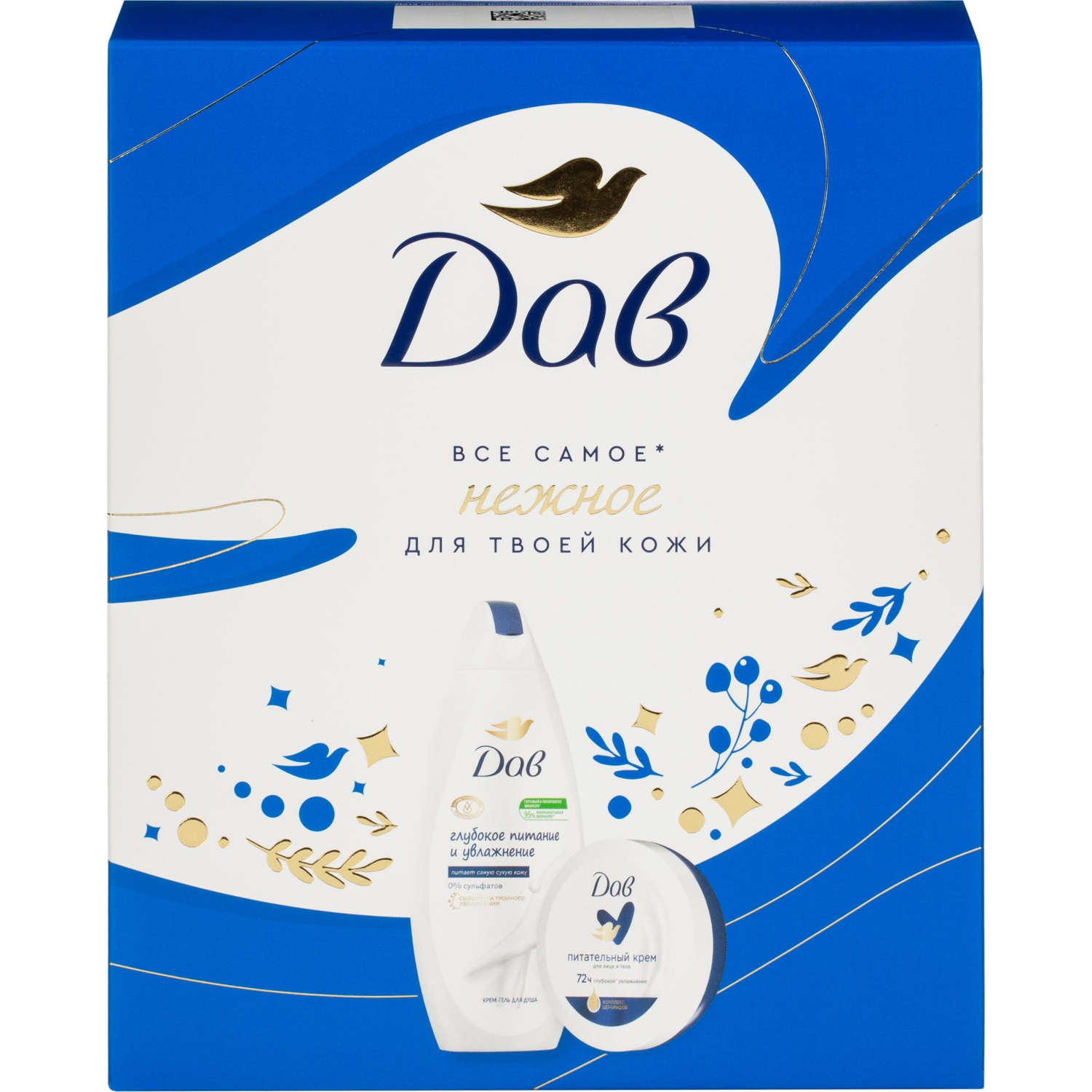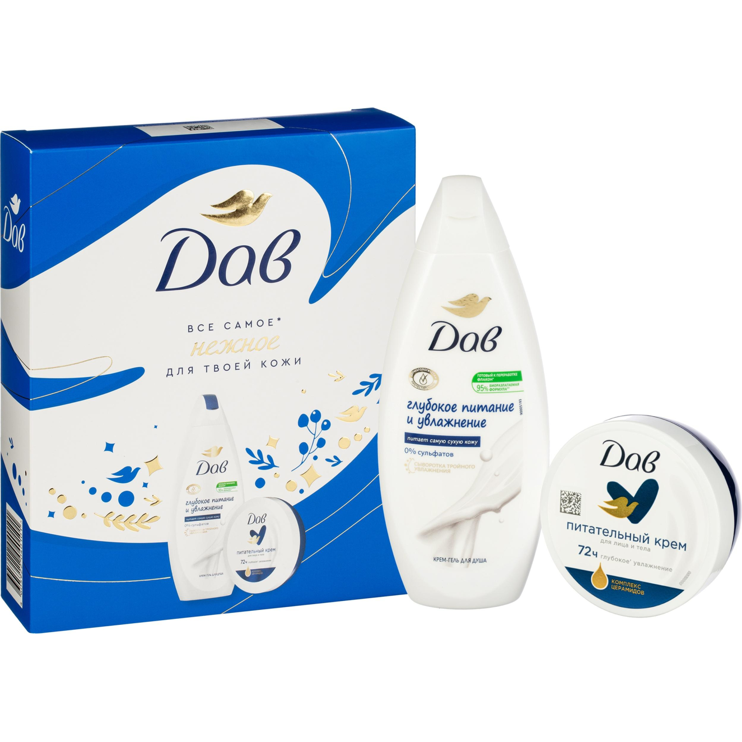 Подарочный набор косметики для женщин включает два средства для ежедневного ухода за кожей. В него входят увлажняющий крем-гель для душа и питательный крем для лица и тела, собранные в стильной упаковке, что делает набор подходящим для подарка.