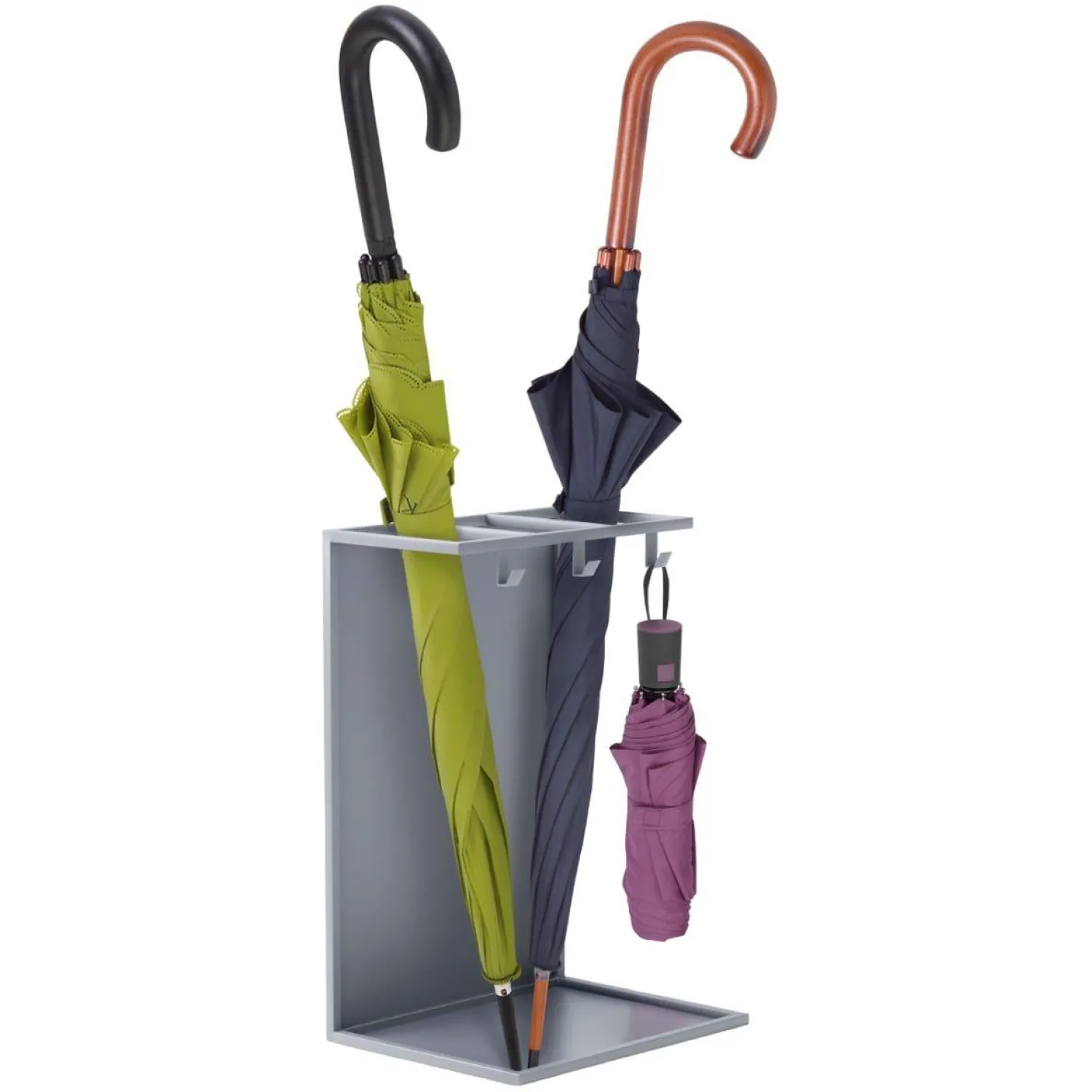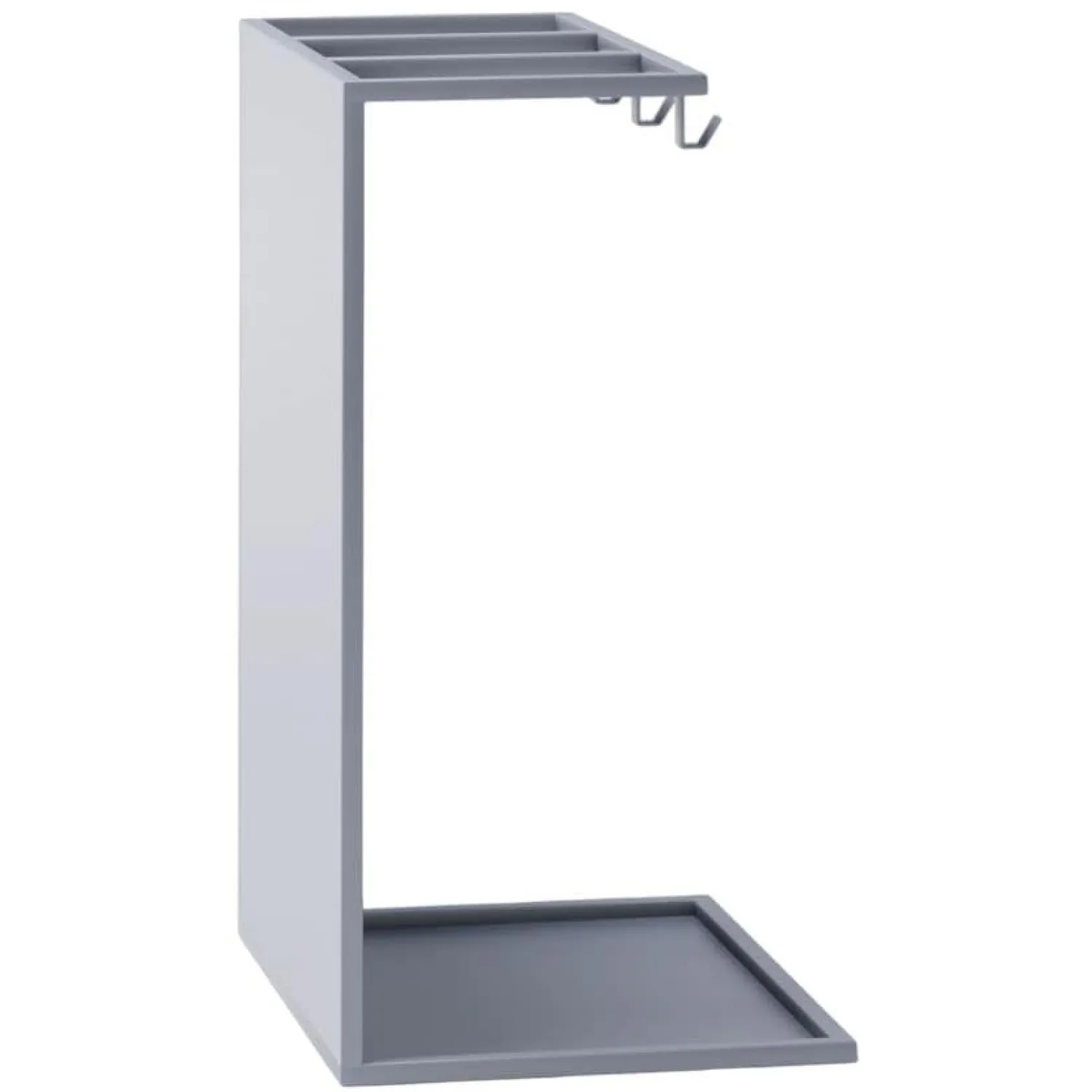 Подставка для зонтов — это аксессуар для эстетического хранения зонтов, который подобно запонкам на хорошем пиджаке также является акцентом вашего интерьера. По своему стилистическому направлению, подставка подходит к современному стилю, лофт, а также станет отличным акцентом при выборе минималистического наполнения пространства. Подставка выполнена полностью из углеродистой стали, что делает ее одновременно легкой в восприятии и твердой и надежной в эксплуатации. Каждая подставка имеет синтетический наполнитель ограничивающий контакт металла с влагой. Подставка имеет три секции для хранения зонтов в виде трости и 3 крючка для хранения складных зонтов.