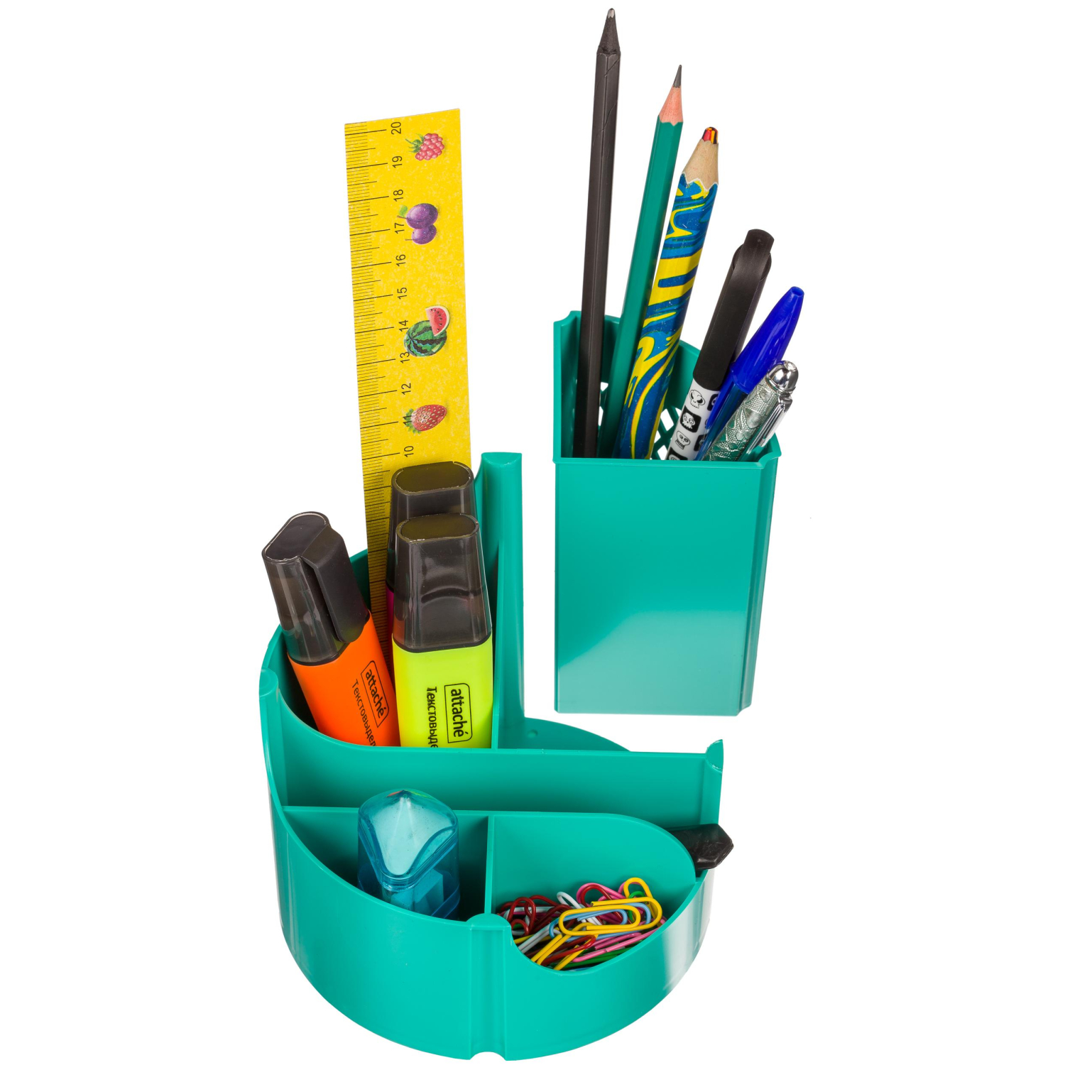 Подставка-органайзер для канцелярских принадлежностей Attache Office 6 отделений бирюзовая 11x12x12 см вращающаяся