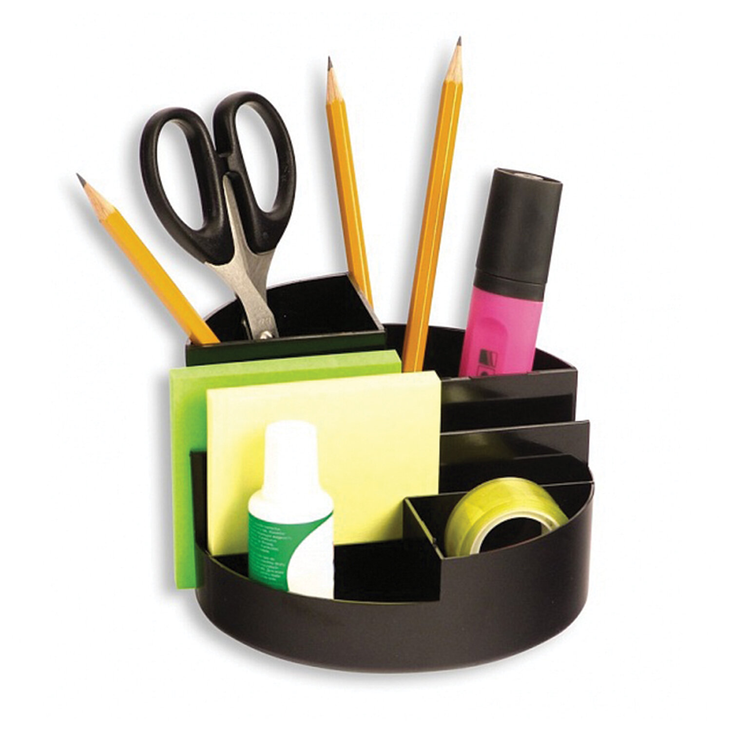 Подставка для канцелярских мелочей Attache хорошо подойдет для рабочего стола и не займет много места. Все необходимые канцелярские принадлежности всегда будут под рукой.Подставка для канцелярских мелочей и пишущих принадлежностей Attache ’Профи’ изготовлена из экологичного пластика черного цвета. Состоит из семи отделений, включая отдельный отсек для блока бумаги. Размеры: 90×130×130 мм.