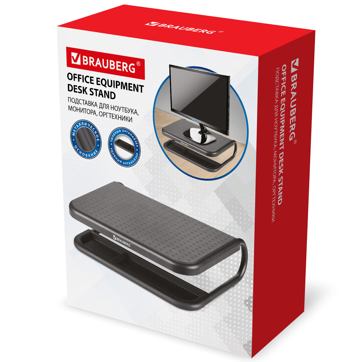 О товаре «Подставка для монитора, ноутбука 380х295х110 мм, металлическое основание, черная, BRAUBERG, 513790»