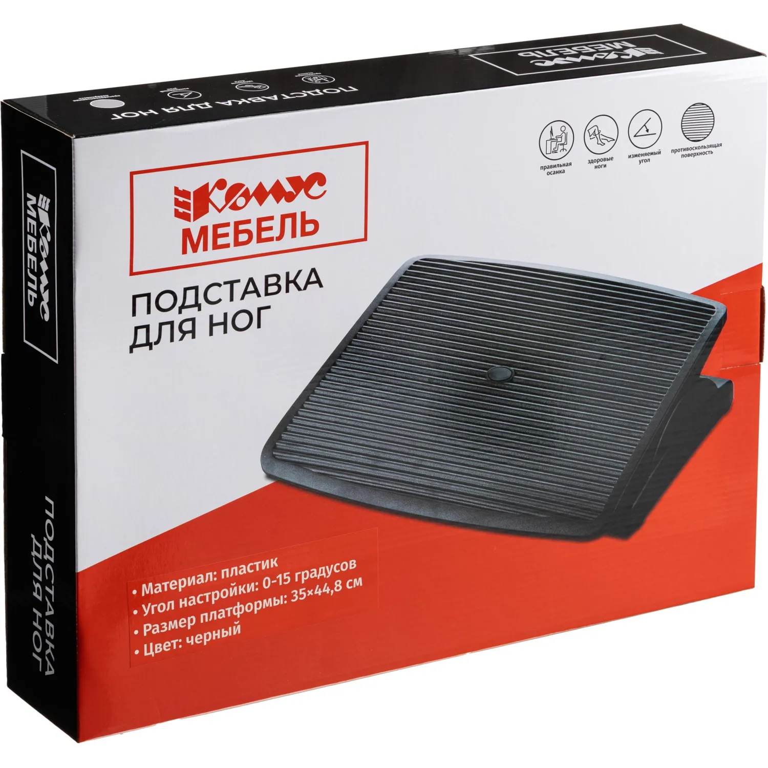 Подставка для ног Комус Мебель F7012 — это эргономичная офисная подставка для ног, повышающая комфорт за рабочим столом. Держите ноги приподнятыми, чтобы уменьшить напряжение и усталость. Регулируемый угол наклона уменьшает нагрузку на поясницу и устраняет дискомфорт при сидении. Подставка для ног уменьшает усталость и боль, возникающие при работе за рабочим столом. Наша подставка для ног улучшает осанку и эргономику, облегчает боль. Свободно плавающая платформа способствует движению голеней, что помогает снизить утомляемость. Угол наклона регулируется от 0 до 20 градусов для максимального индивидуального комфорта. Выступы на поверхности массажируют подошвы ног и улучшают кровообращение. Нескользящая опорная поверхность обеспечивает дополнительный контроль. Привлекательный дизайн выполнен из ударопрочного пластика. Эта регулируемая подставка для ног идеально подходит для использования в современных офисах.