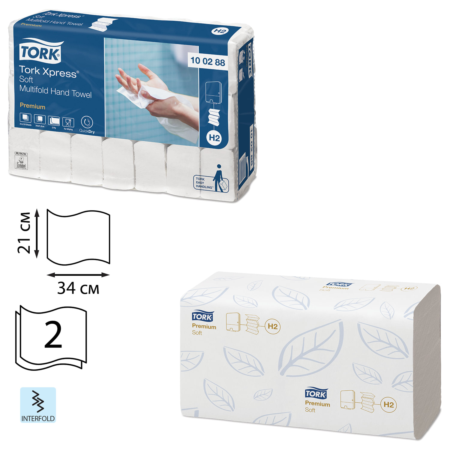 Полотенца бумажные листовые Tork H2 М-сложение 2-слойные белые 21 пачка по 110 листов (100288)