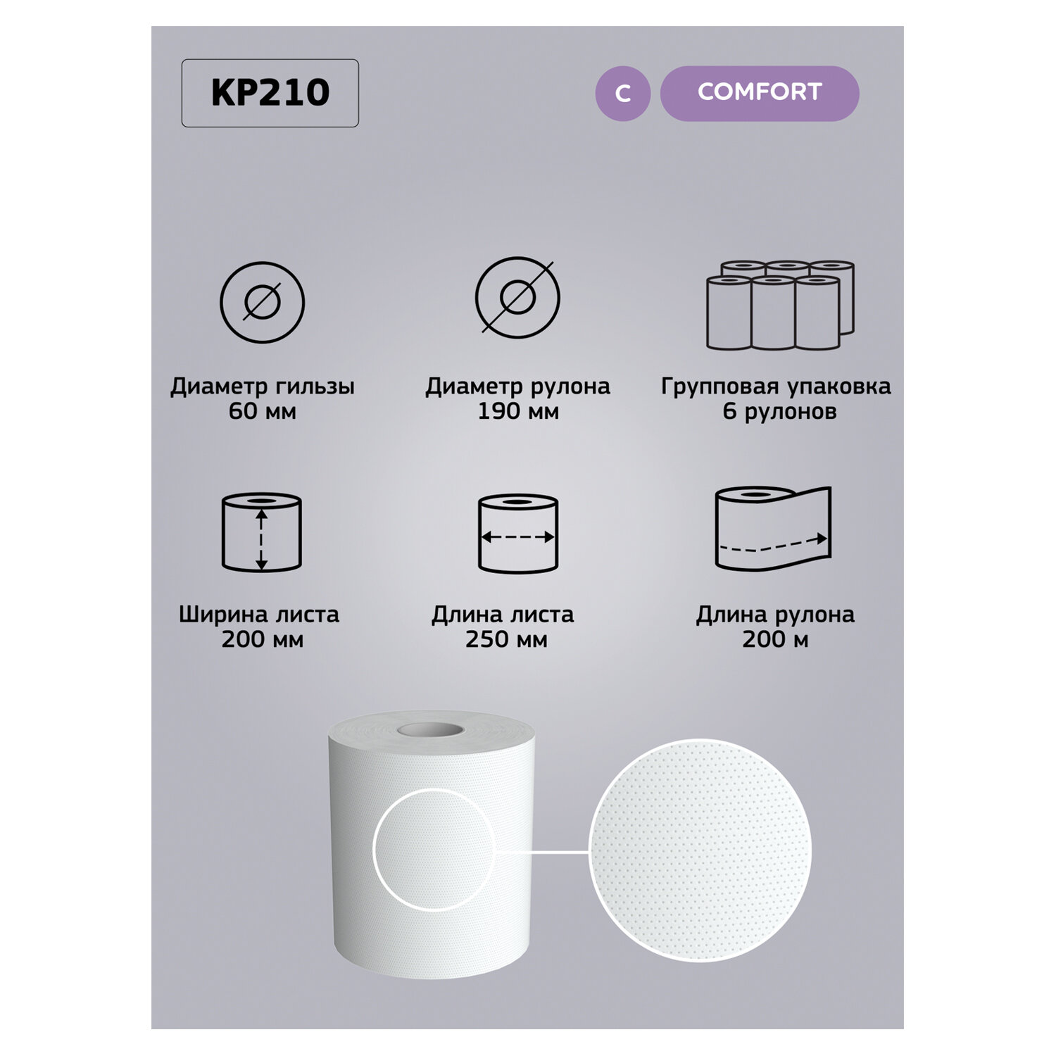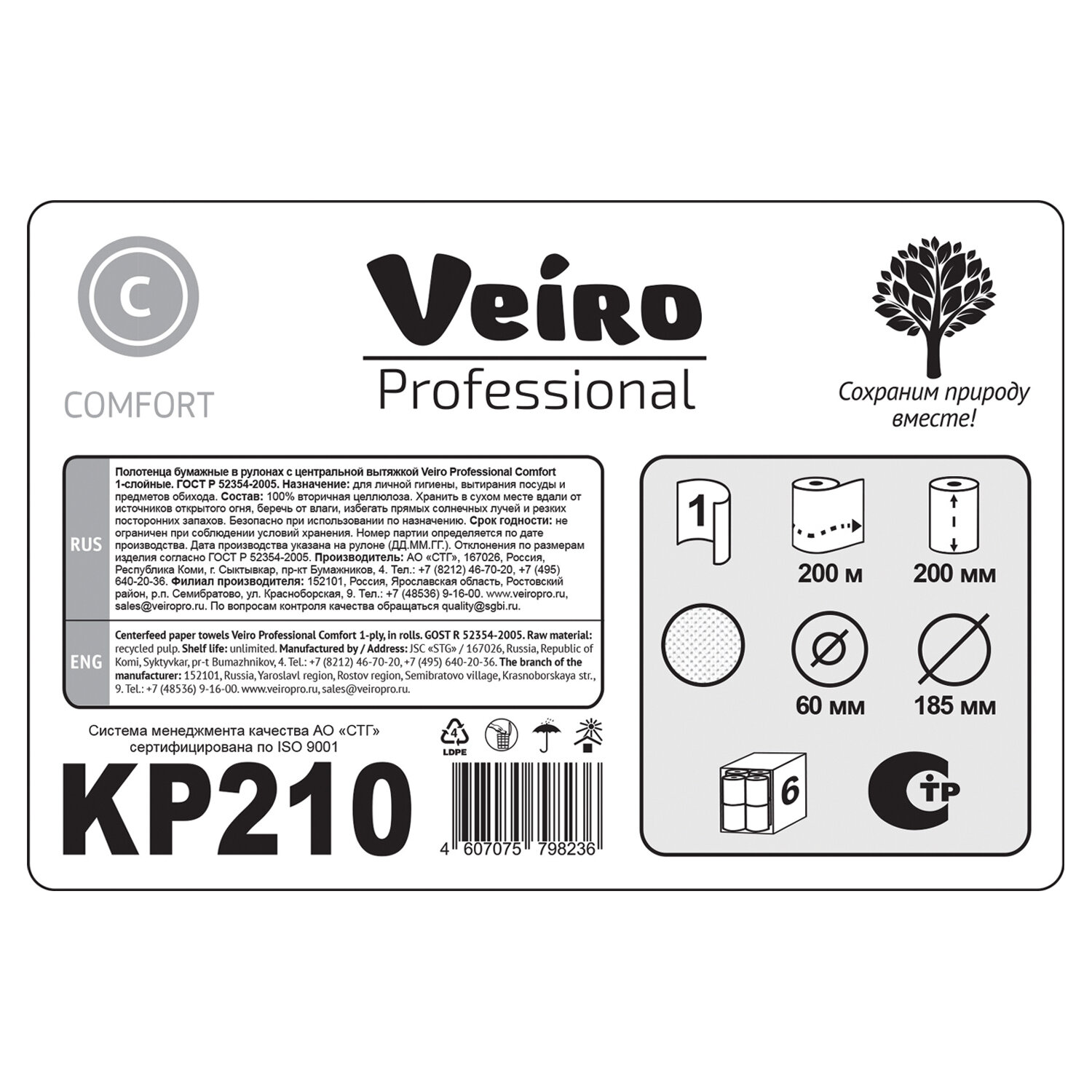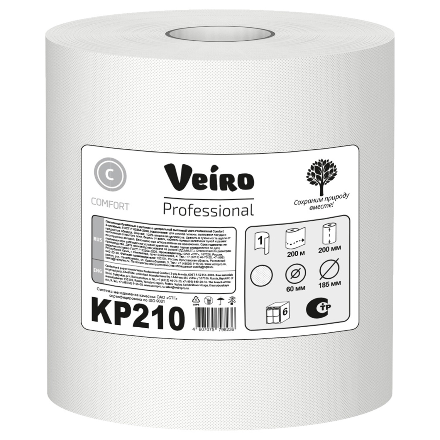 О товаре «Полотенца бумажные с центральной вытяжкой 200 м, VEIRO (Система M2) COMFORT, 1-слойные, белые, КОМПЛЕКТ 6 рулонов, KP210, КР210»