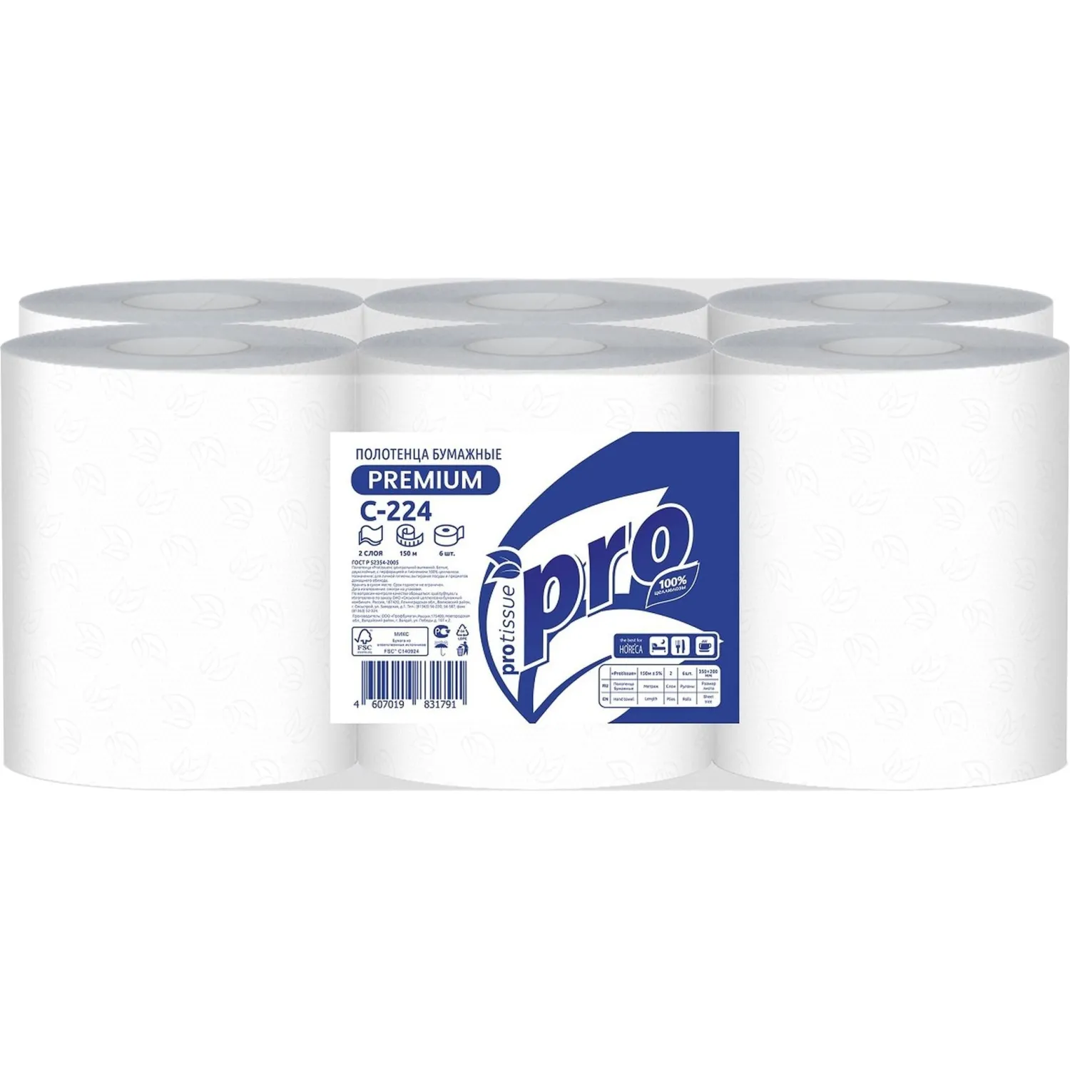 Полотенца бумажные рулонные с центральной вытяжкой PROtissue M2/M4 2-слойные белые 6 рулонов по 150 метров (С224)