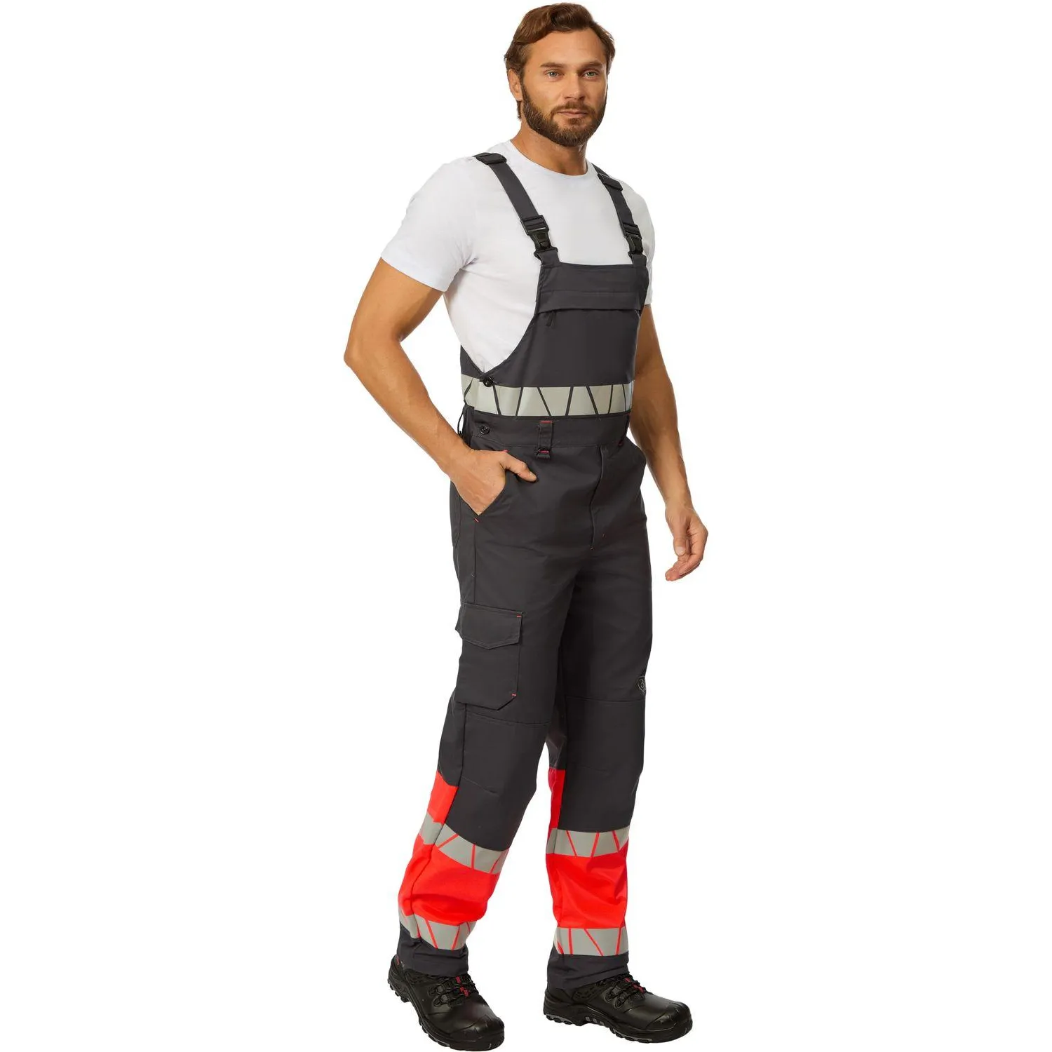 Полукомбинезон сигнальный летний мужской Равелин-ПК с СОП красный/графит (размер 52-54, рост 182-188)