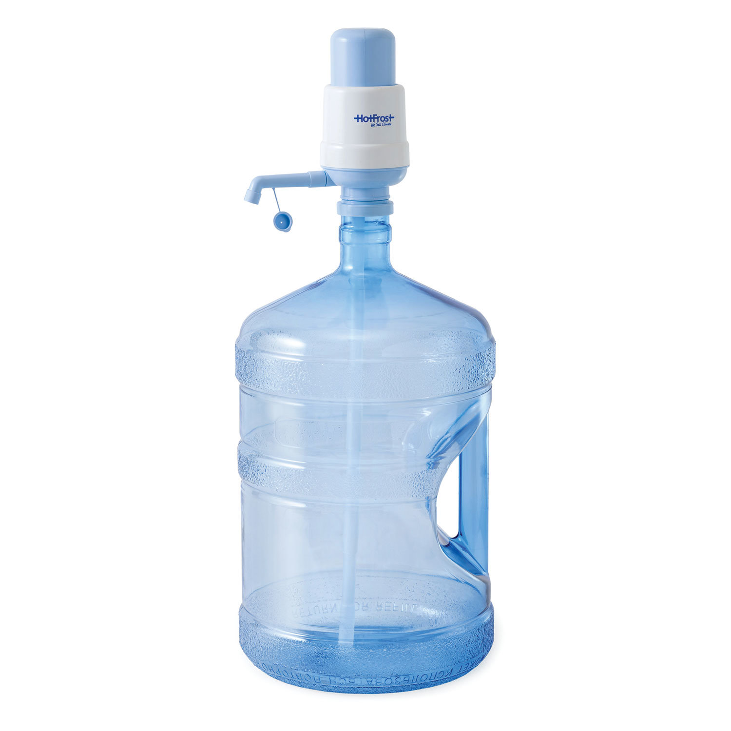 Механическая помпа — это самое простое устройство для розлива воды комнатной температуры. Она надевается прямо на бутыль и не требует электропитания. Подача воды осуществляется за счет создания насосом помпы избыточного давления воздуха в бутыли. Воду дает порционно — при каждом нажатии на кнопку насоса.