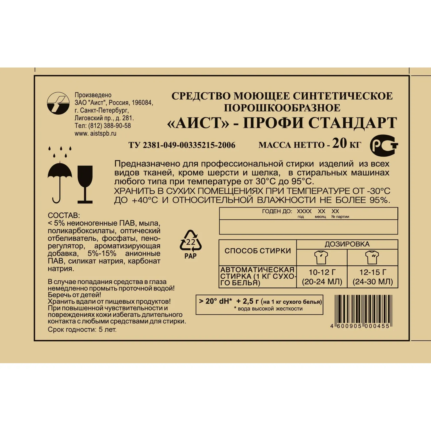 О товаре «Порошок стиральный автомат Аист-Профи Стандарт 20 кг»