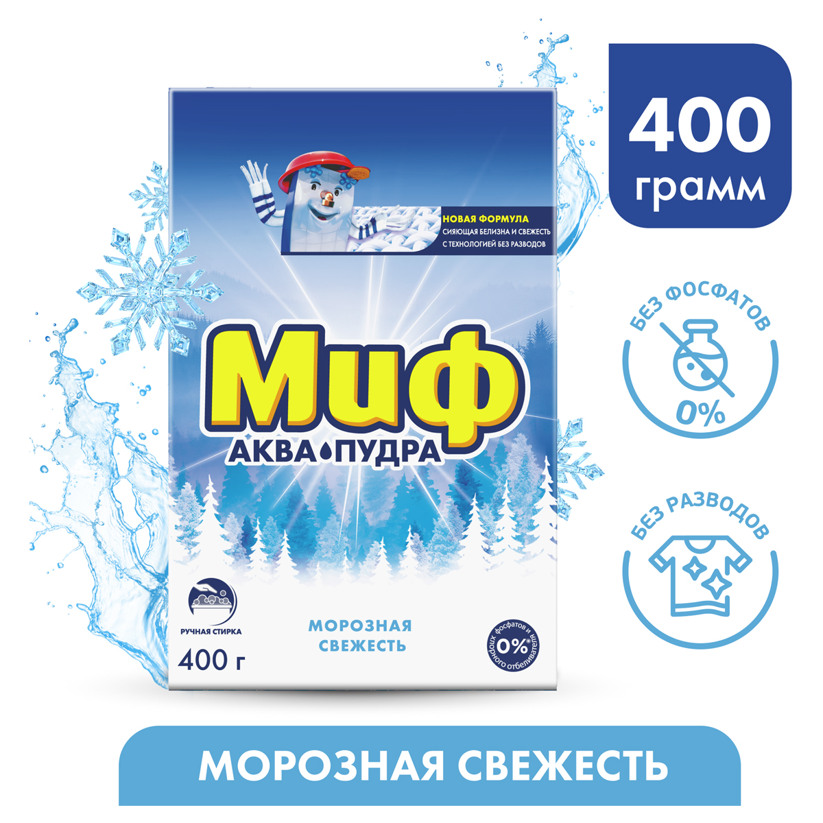 О товаре «Порошок стиральный для ручной стирки Миф Аква Пудра Морозная свежесть 400 г»