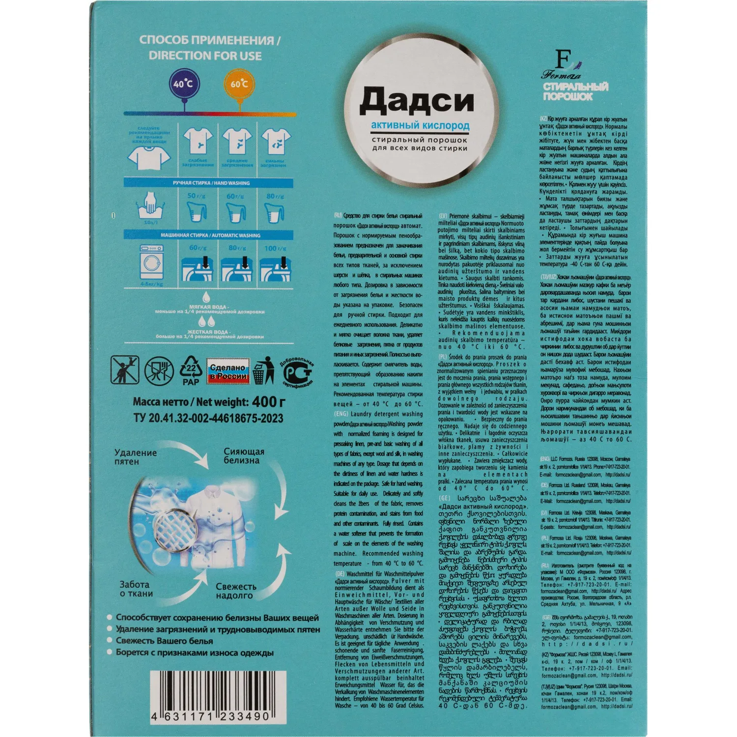 Порошок стиральный автомат Дадси Активный кислород Свежий цвет 0.4 кг для белого и цветного белья/для тёмных и чёрных тканей