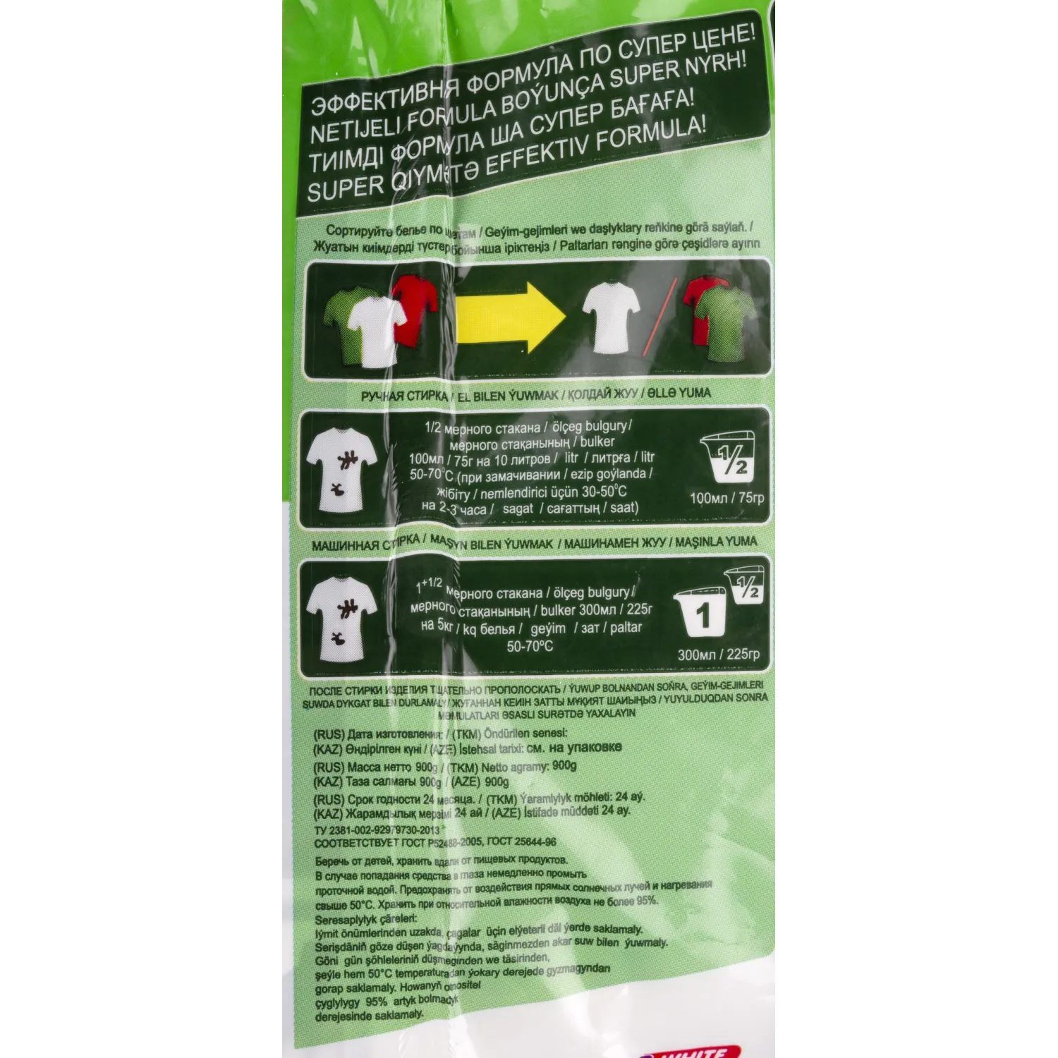 Назначение: порошок стиральный синтетический с нормируемым пенообразованием для замачивания, стирки изделий из хлопчатобумажных, льняных и синтетических волокон вручную.