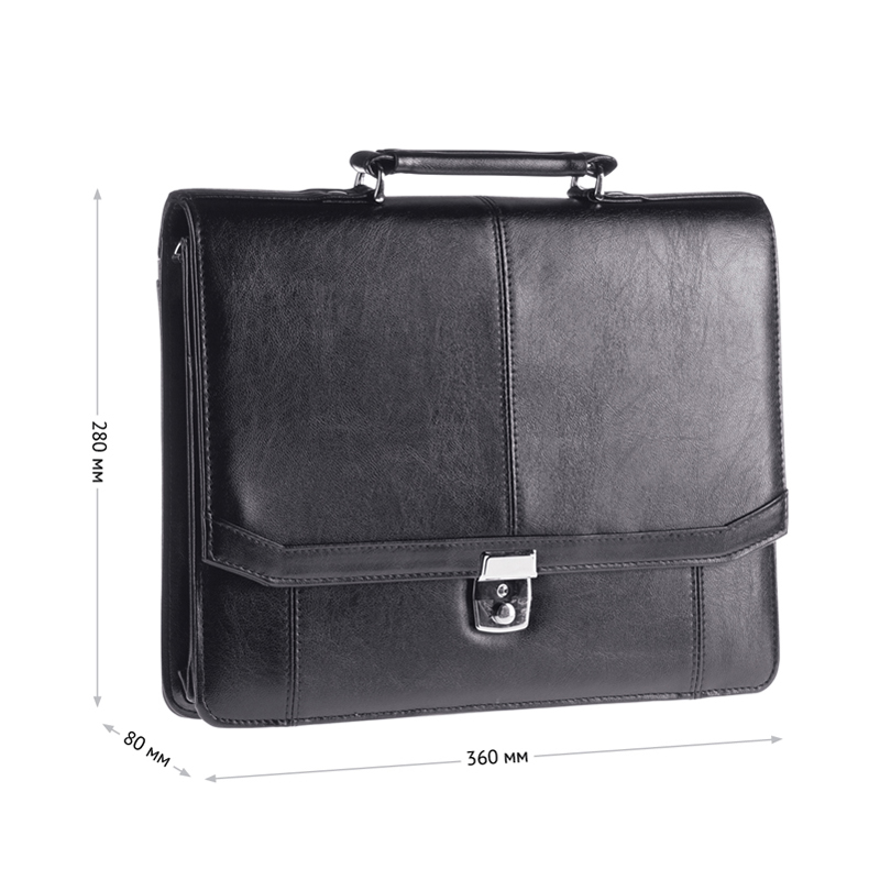 Портфель OfficeSpace "Planeta", кожзам, черный, 3 отделения, метал. замок