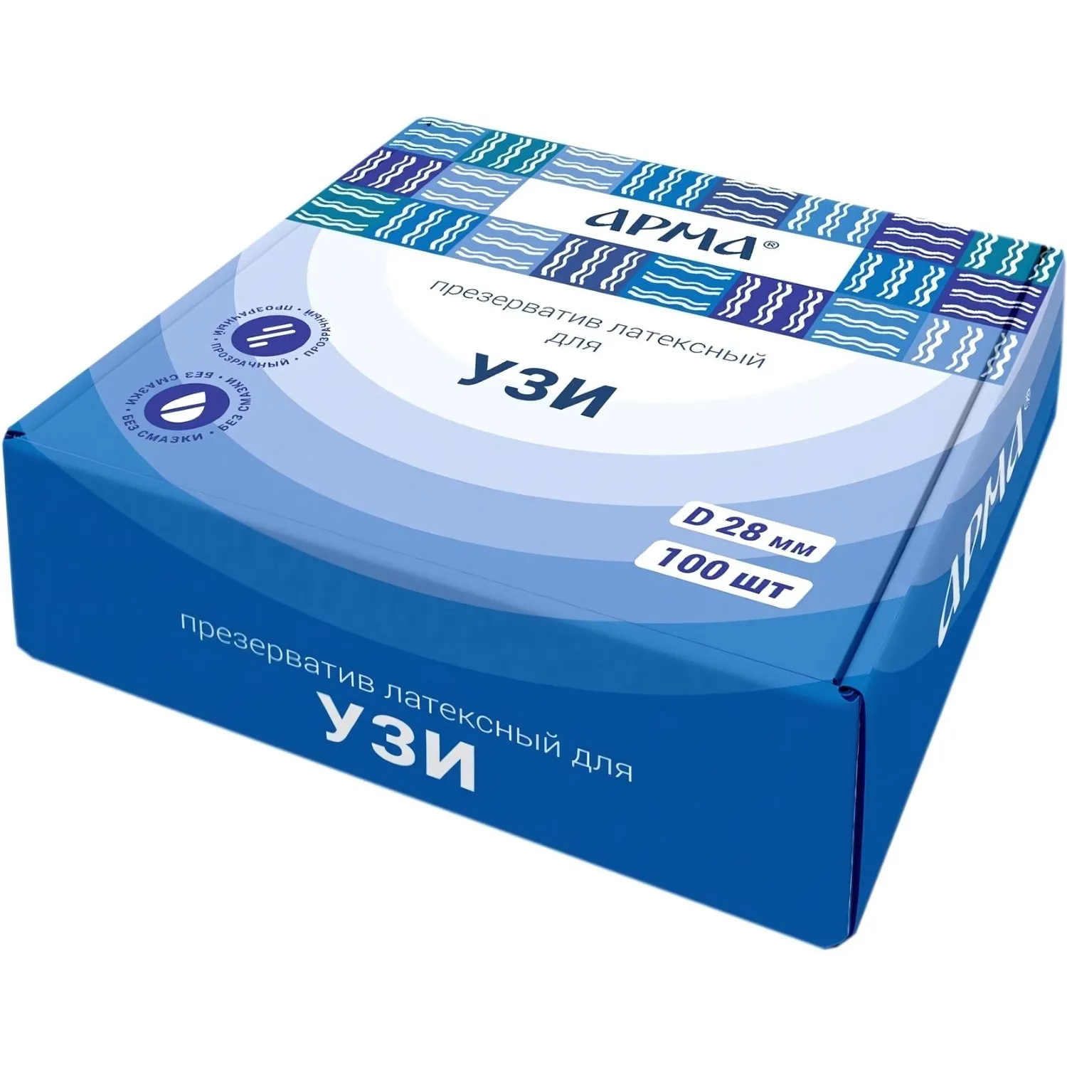 Презерватив для УЗИ АРМА предназначен для использования при процедурах трасвагинального и трансректального исследования УЗИ. Презервативы латексные защищают организм пациента от инфекций, а датчик аппарата УЗИ — от загрязнения биологическими выделениями. Презервативы для УЗИ производятся из натурального латекса. Размер насадки: длина 205 мм, диаметр 28 мм. Презервативы без смазки оптимальны для всех видов датчиков аппаратов УЗИ. Прозрачная латексная стенка толщиной 0.07 мм не искажает сигнал. Презервативы для аппаратов УЗИ не имеют накопителя и смазки. Сочетаются со специальной смазкой для процедур УЗИ. Первичная упаковка герметично запаянный блистер из трехслойного фольгированного материала защищает презерватив от негативного воздействия света и воздуха. Вторичная упаковка картонная, имеет контроль первого вскрытия. В упаковке 100 шт презервативов.