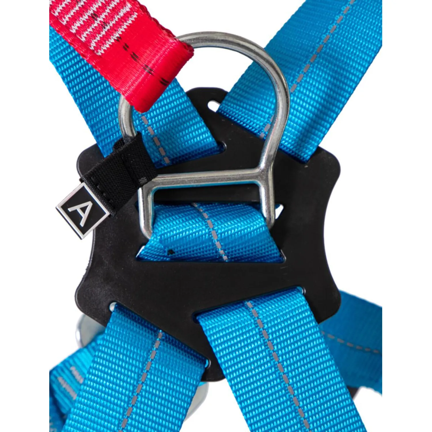 Привязь предназначена для защиты от падения с высоты в удерживающих, страховочных системах, а также системах позиционирования в рабочем положении. Размер: 1 (46-52). Талия: 80–112 см. 2 страховочные точки — на груди и на спине — регулируемые по высоте. Асимметричная фронтальная точка. Контрастный удлинитель страховочной точки на спине для удобного