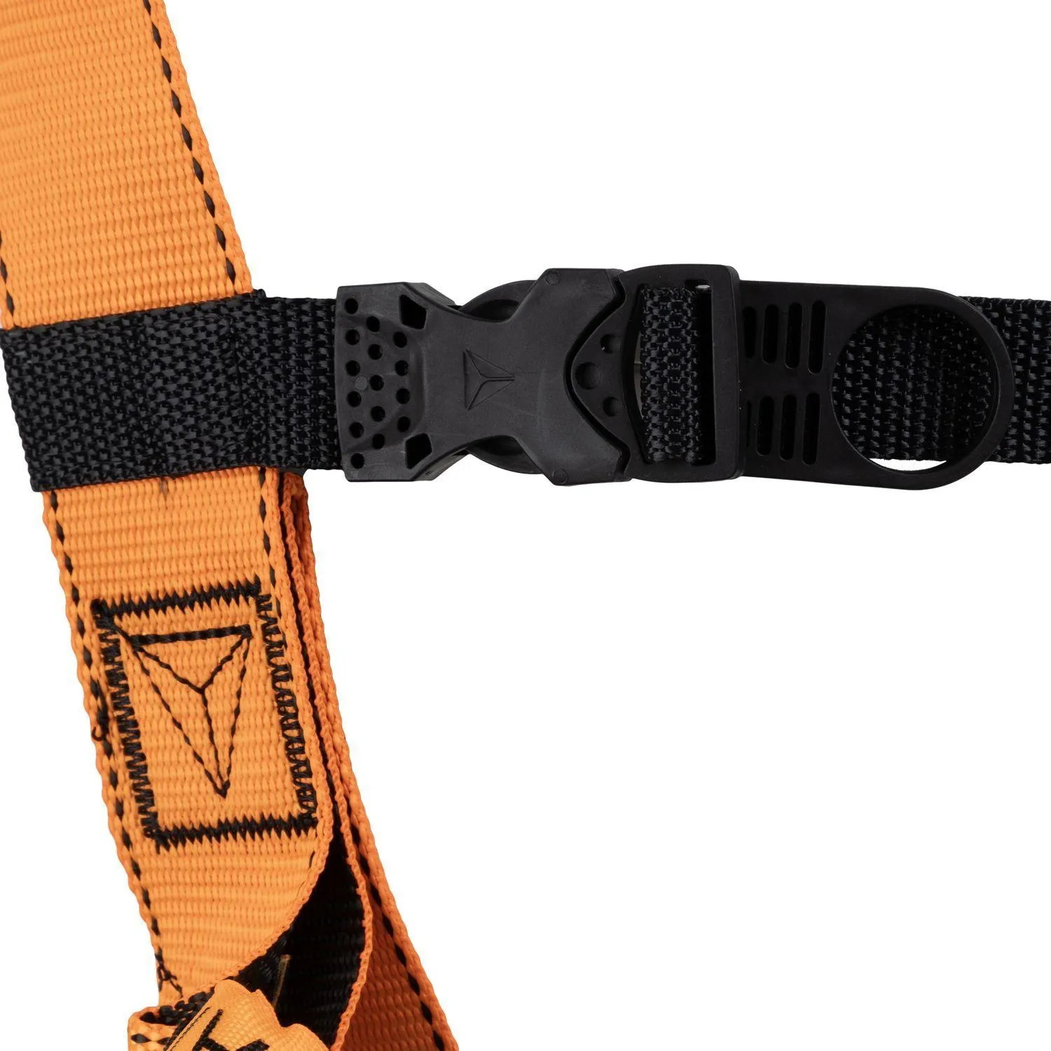 Привязь с 2 точками крепления для защиты от падений (спинная, грудная). Материал лямок — полиэстер. Регулировка привязи осуществляется с помощью 2 пряжек на ножных лямках, 2 регулировочных пластин по бокам и пряжки на грудной лямке. Допустимая нагрузка по весу вместе с индивидуальным оборудованием до 140 кг (строп и блокирующее устройство сюда не входят). Размер: 52-56.