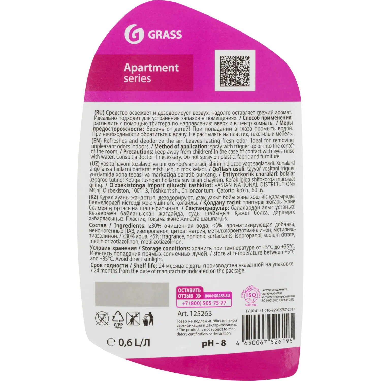 О товаре «Освежитель воздуха Grass Apartment series A5 600 мл»