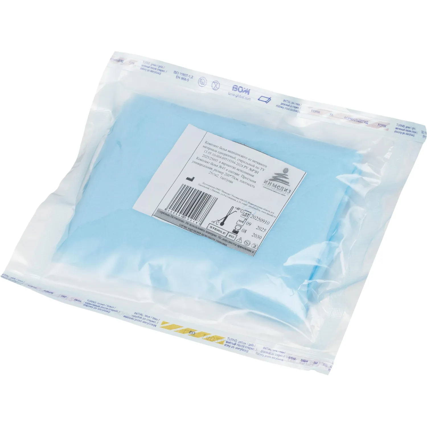 Простыня одноразовая Инмедиз стерильная в сложении 200x70 см голубая 25 г/кв.м