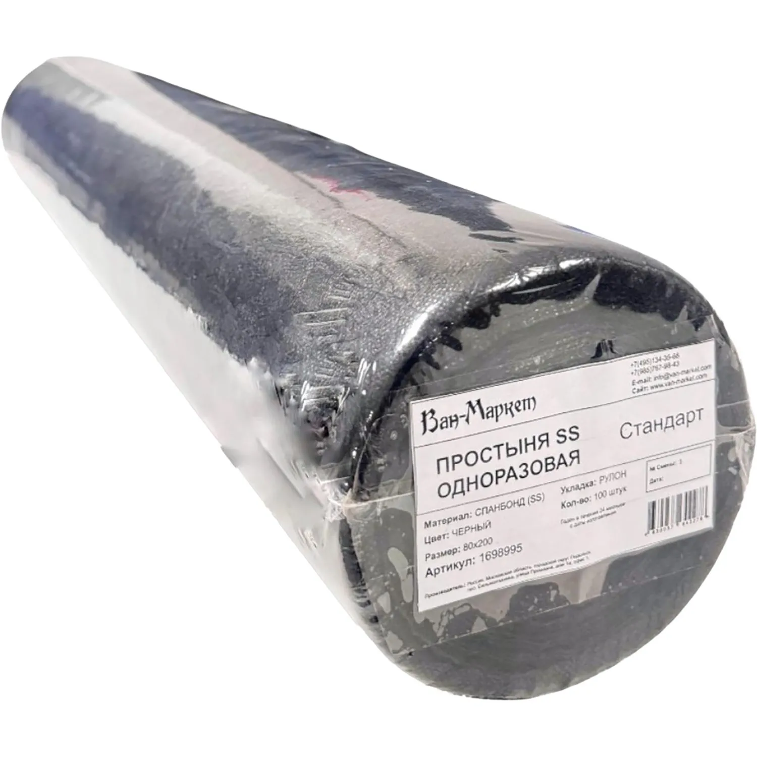Простыня одноразовая Ван-Маркет нестерильная в рулоне с перфорацией 200 x 80 см (черная, 100 штук в рулоне)