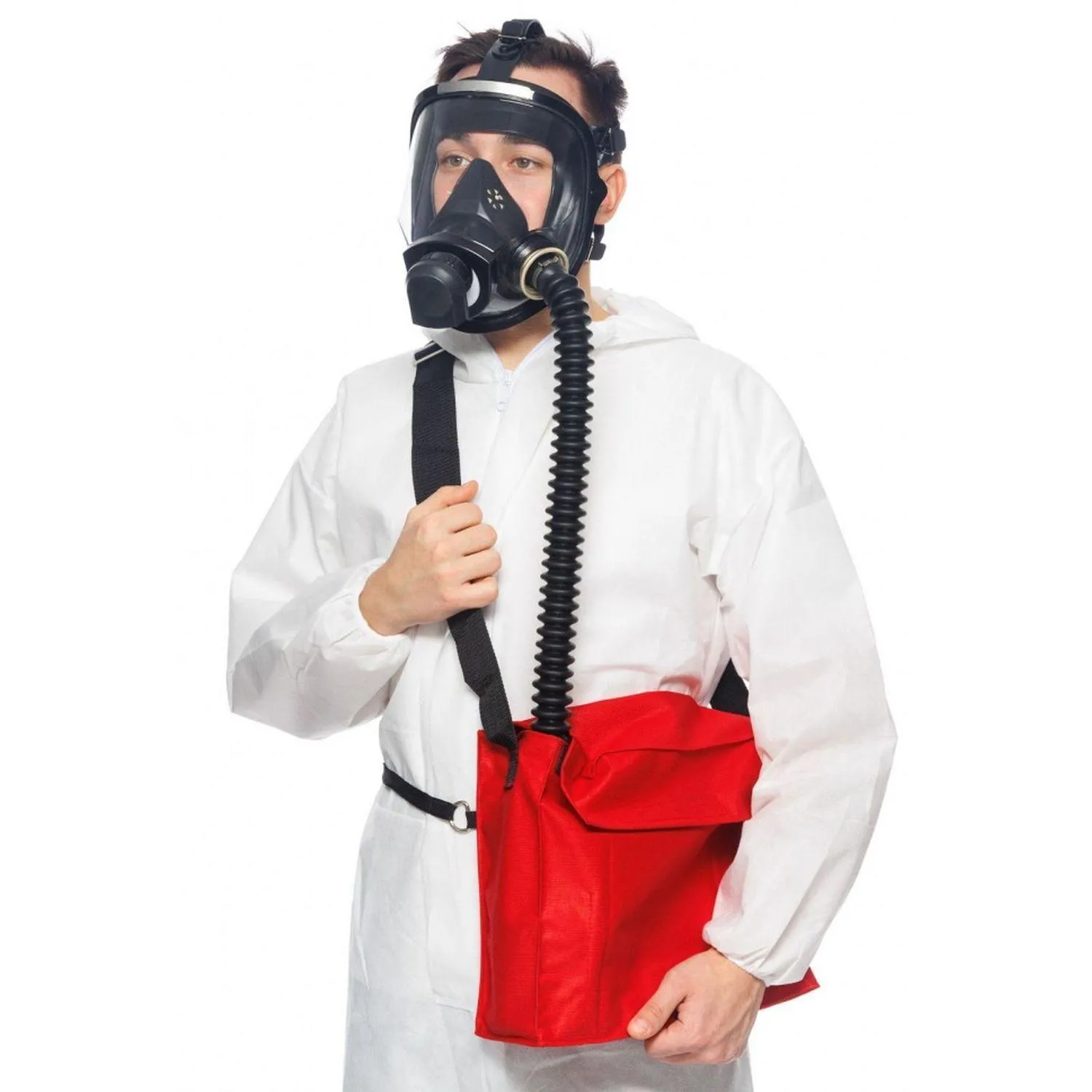 Сумка предназначена для хранения и ношения противогаза. Длина плечевого ремня регулируется с помощью пряжек. Поясная тесьма предназначена для закрепления сумки с противогазом на приемлемом для эксплуатации противогаза уровне пользователя.