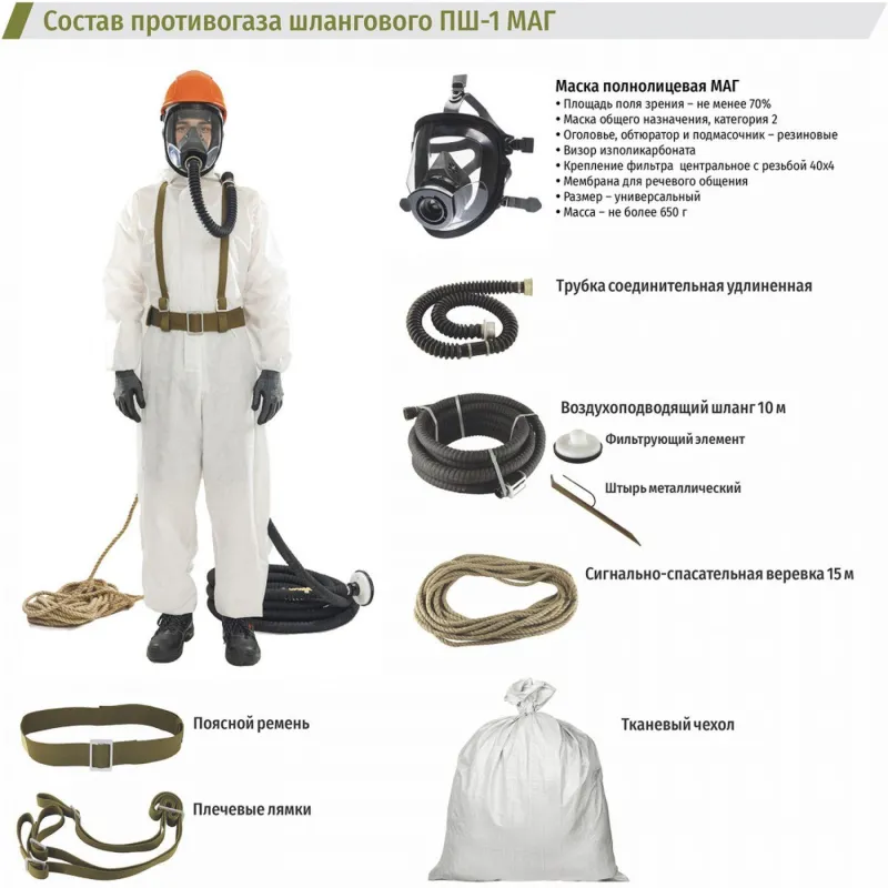 Противогаз ПШ-1 (1шл.л., 10м, МАГ (1шт.), х/б), шт