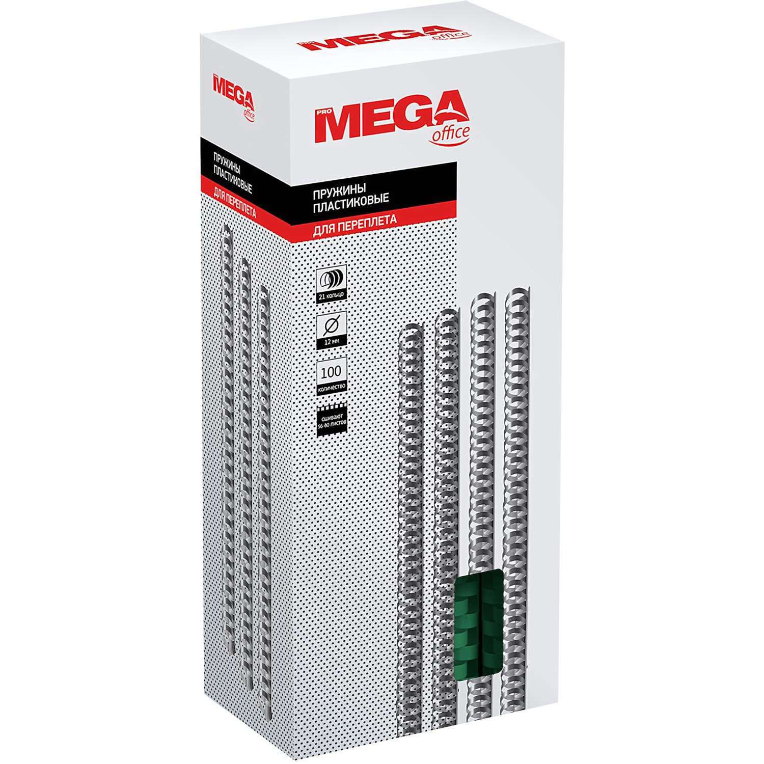 Пружины для переплёта пластиковые Комус (ProMega office) 12мм зел. 100шт/уп. (для сшивания 80 листов)