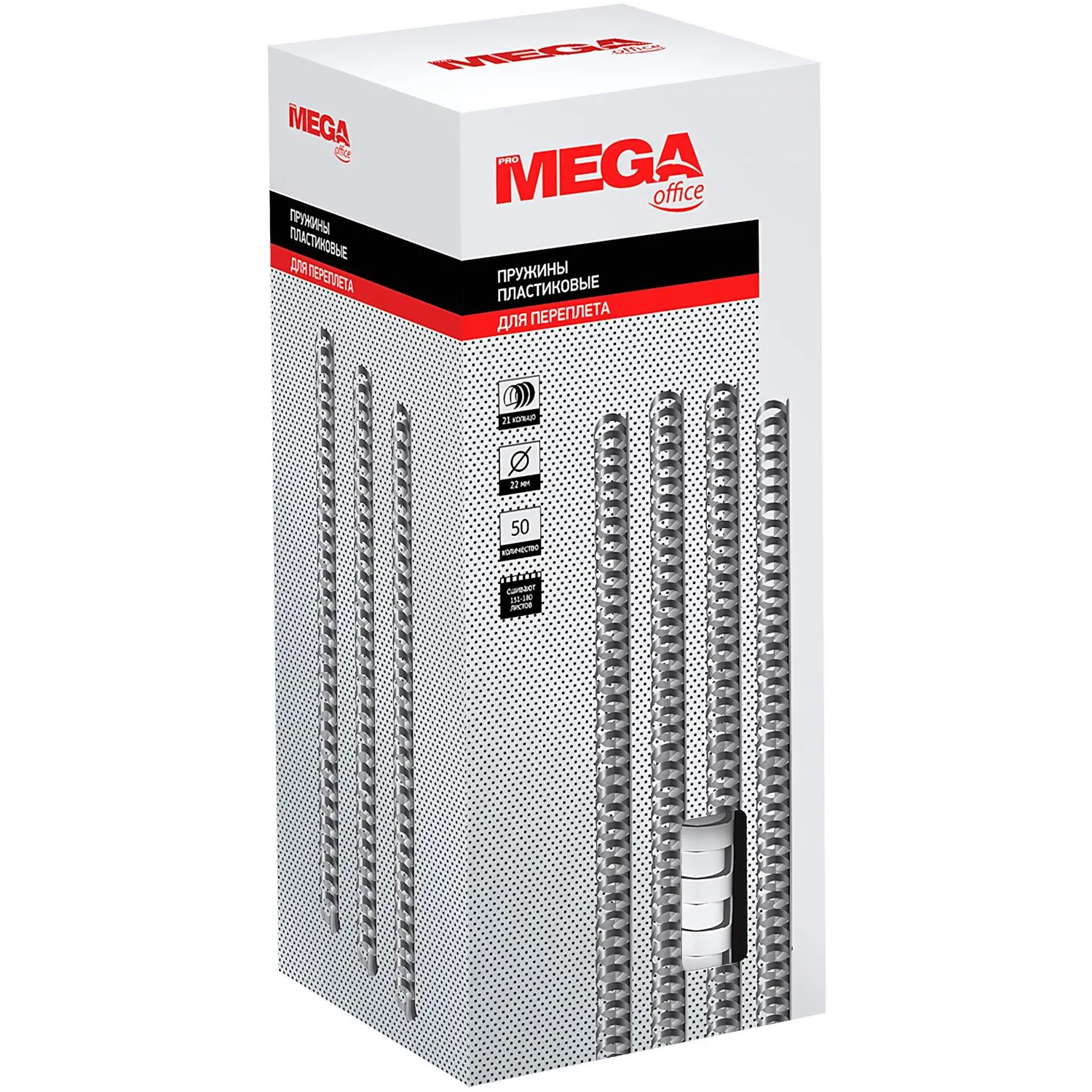Пружины для переплета пластиковые ProMega office 22мм белые 50шт/уп. (для сшивания 180 листов)