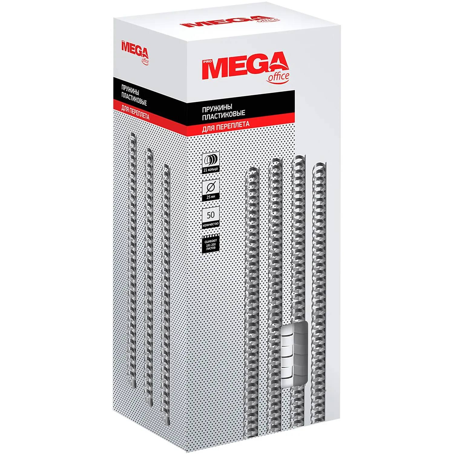О товаре «Пружины для переплета пластиковые ProMega office 25мм белые 50 шт. /уп. (для сшивания 200 листов)»