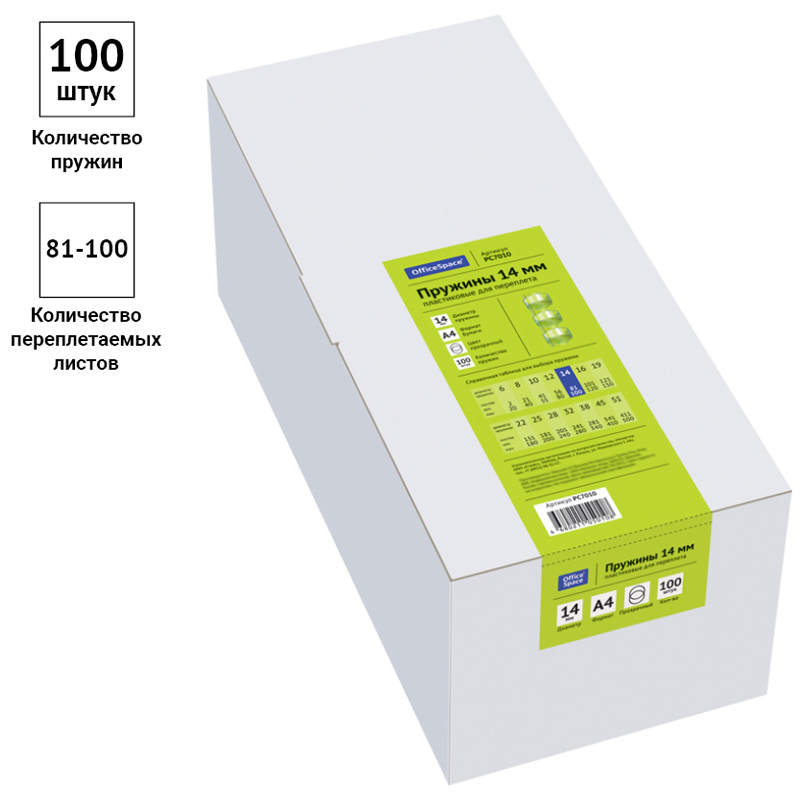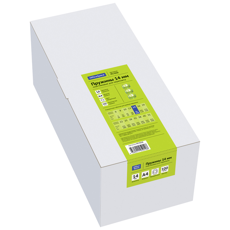 О товаре «Пружины пластик D=14мм OfficeSpace, прозрачн. бесцветный, 100шт.»