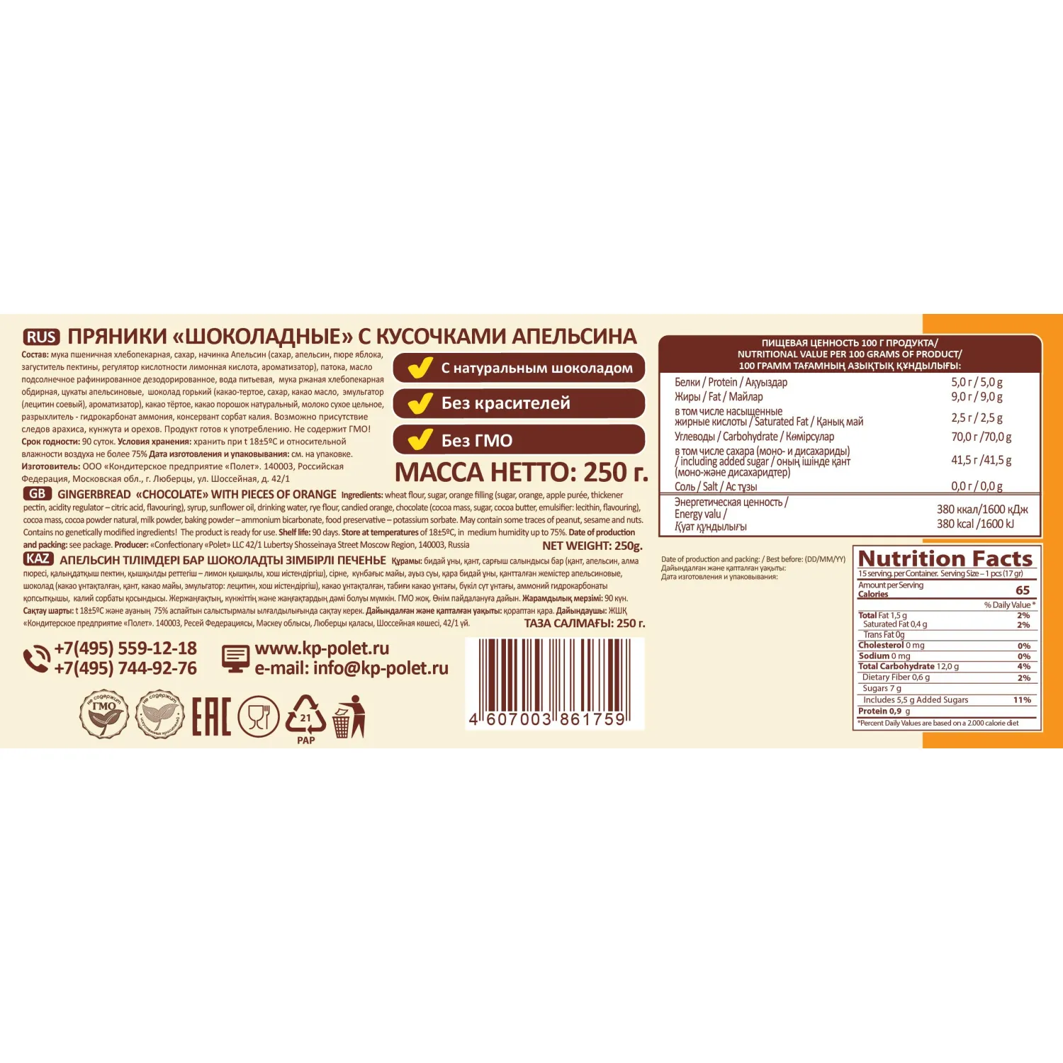 О товаре «Пряники Полет Шоколадные с кусочками апельсина, 250г»
