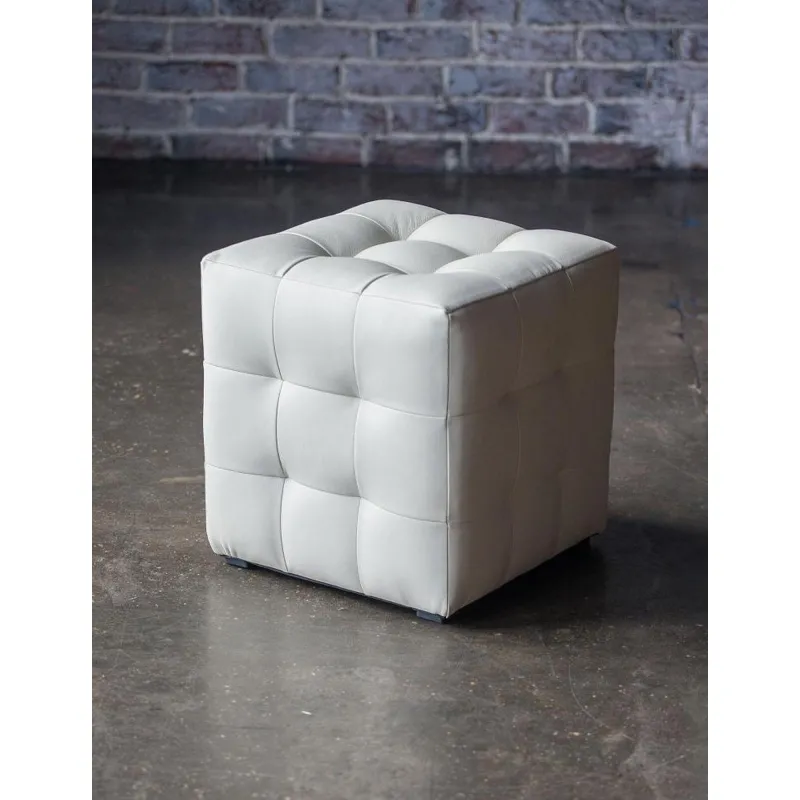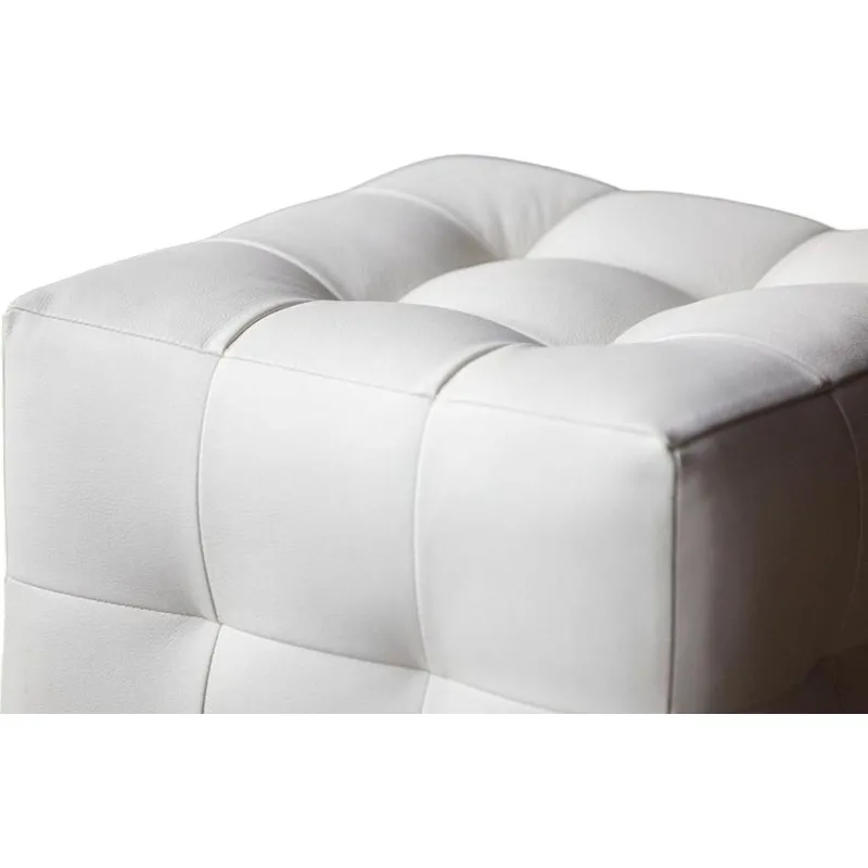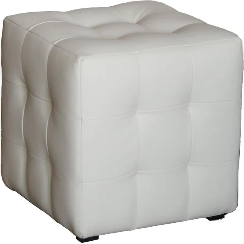Обивка выполнена из искусственной кожи, устойчивая к износу, что делает ее практичным выбором для повседневного использования. Ножки выполнены из дерева и имеют высоту 15 мм, что придает пуфу устойчивость.