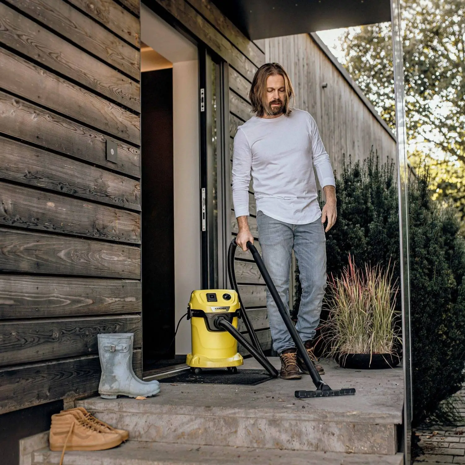 Компактный и энергоэффективный хозяйственный пылесос WD 3 P V-17/4/20 Workshop развивает очень высокую силу всасывания при низкой потребляемой мощности (лишь 1000 Вт). Этот специальный аппарат для уборки в домашней мастерской оснащен 2-метровым всасывающим шлангом и 4-метровым кабелем. В комплект его поставки входят 2 пластмассовые удлинительные трубки, насадка для пола со вставками, щелевая насадка, тонкий шланг и адаптер для присоединения инструментов, а также насадка-кисть с мягкой щетиной. Еще одним практичным решением является встроенная штепсельная розетка для подключения к пылесосу электроинструментов, обеспечивающая его включение и выключение синхронно с используемым инструментом. Кроме того, пылесос оснащен прочным пластмассовым мусоросборником объемом 17 л и насадкой для пола со вставками, позволяющей быстро и тщательно удалять мелкий и крупный мусор. Для очистки более чувствительных поверхностей может также использоваться насадка-кисть. Благодаря съемной рукоятке насадки можно присоединять непосредственно к всасывающему шлангу для легкой уборки в стесненных пространственных условиях. Удаление мусора из труднодоступных мест значительно облегчается функцией выдувания.