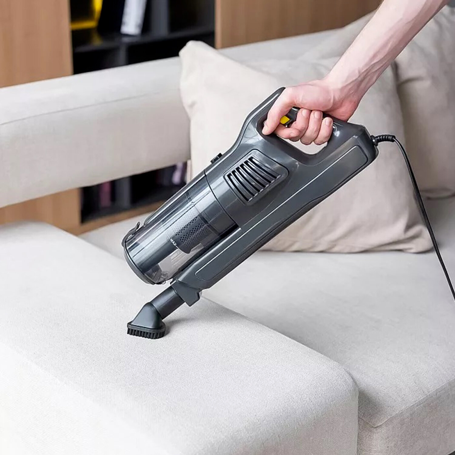 Пылесос оснащен фильтром тонкой очистки HEPA, который улавливает аллергены и мельчайшие частицы пыли, делая воздух в помещении чище и безопаснее. Съемная моторная часть превращает устройство в портативный пылесос для локальной уборки, а щелевая насадка помогает очистить труднодоступные места. Объемный пылесборник на 0,8 л вмещает большое количество мусора, а длинный кабель обеспечивает удобство при уборке даже в просторных помещениях.