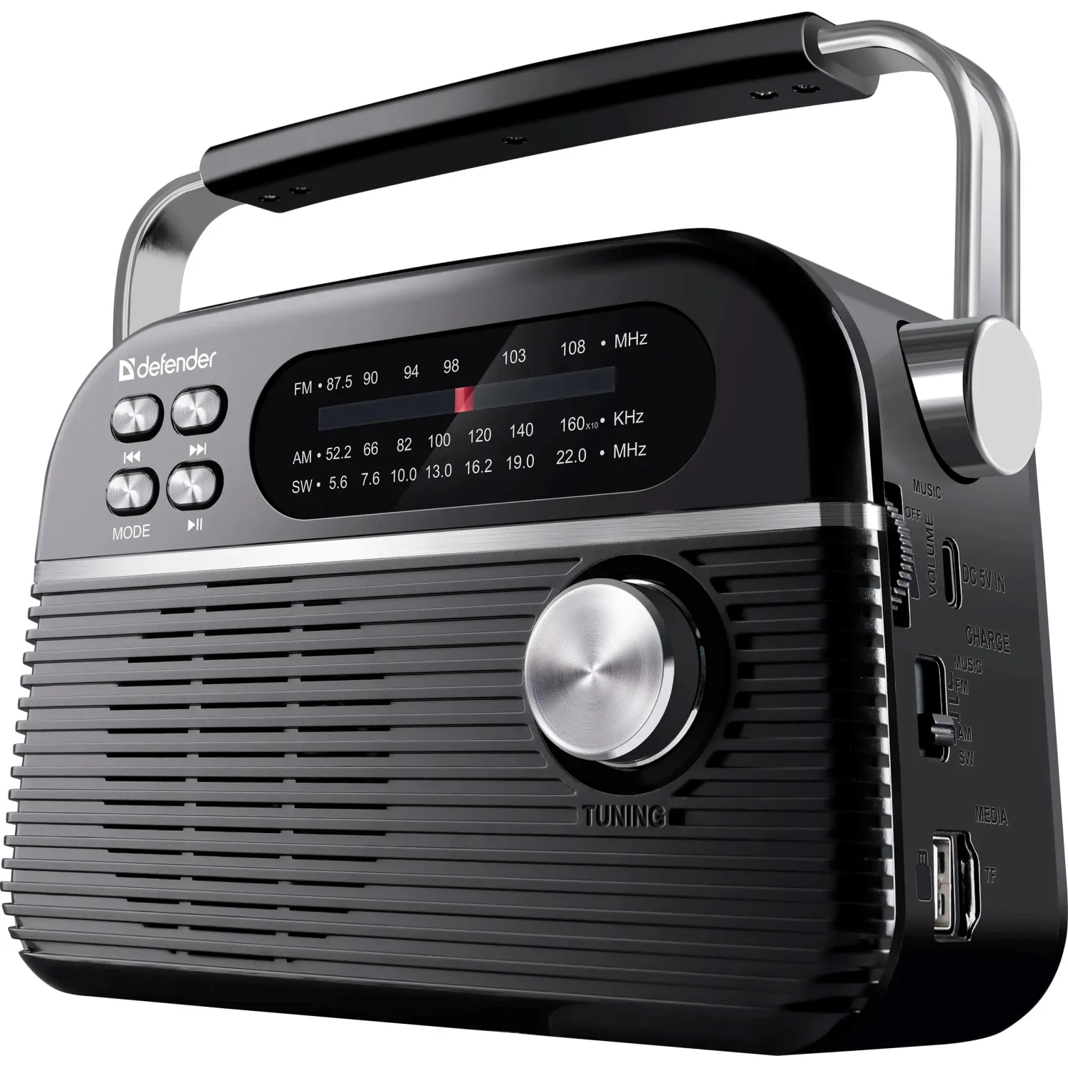 Радиоприемник Defender Vega 5Вт FM/AM/SW/BT/USB/TF/1200мАч