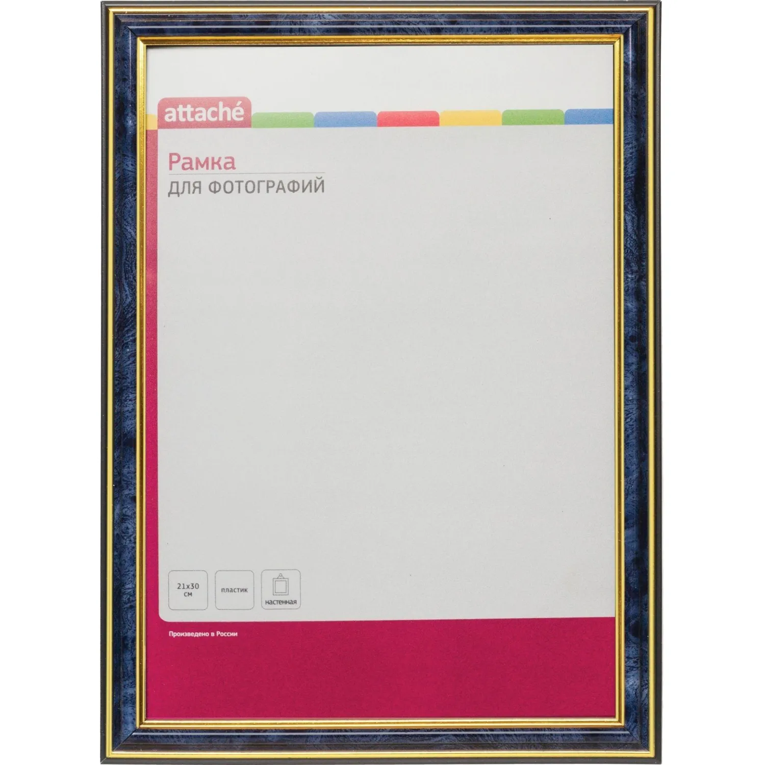 О товаре «Рамка Комус (Attache) А4 21x30 см пластиковый багет 20 мм синяя»