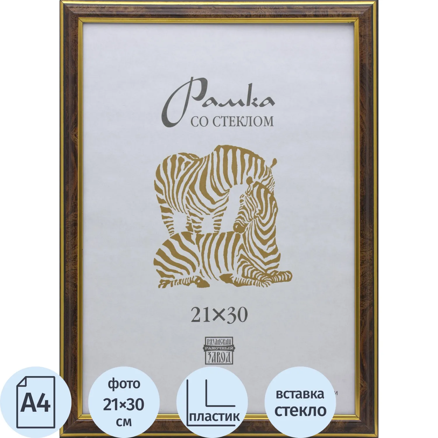 О товаре «Рамка Зебра А4 21x30 см пластиковый багет 19 мм коричневая»