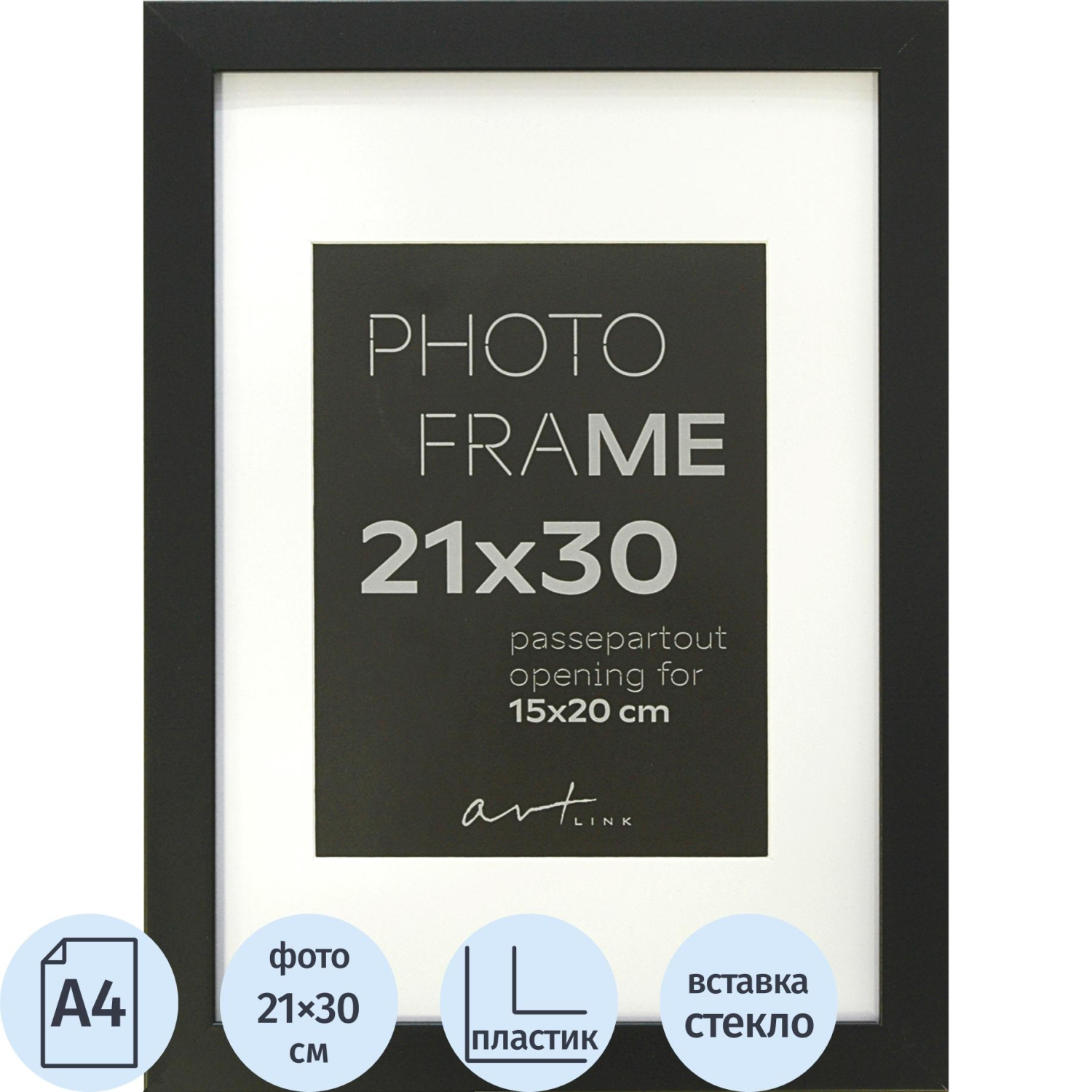 О товаре «Рамка с паспарту Gloria Black А4 21x30 см пластиковый багет 21 мм черная»