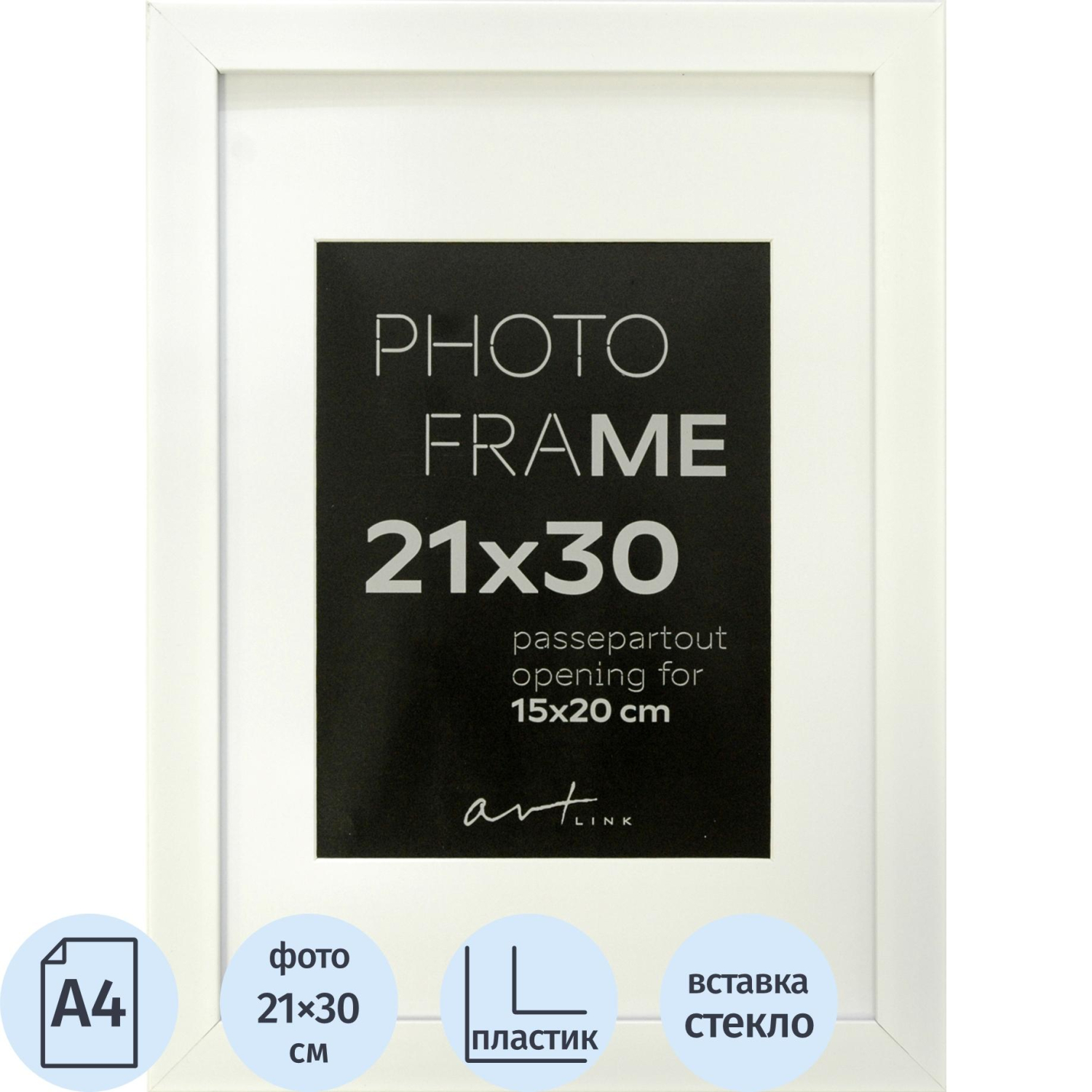 Рамка с паспарту Gloria White А4 21x30 см пластиковый багет 21 мм белая