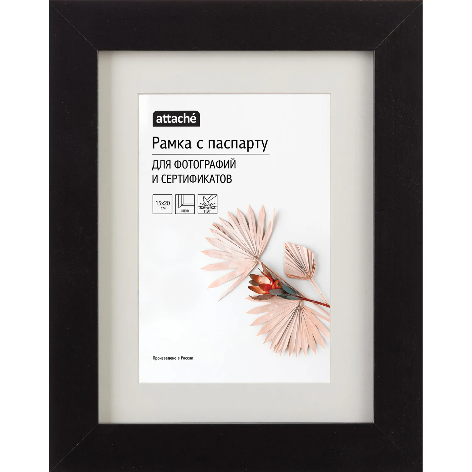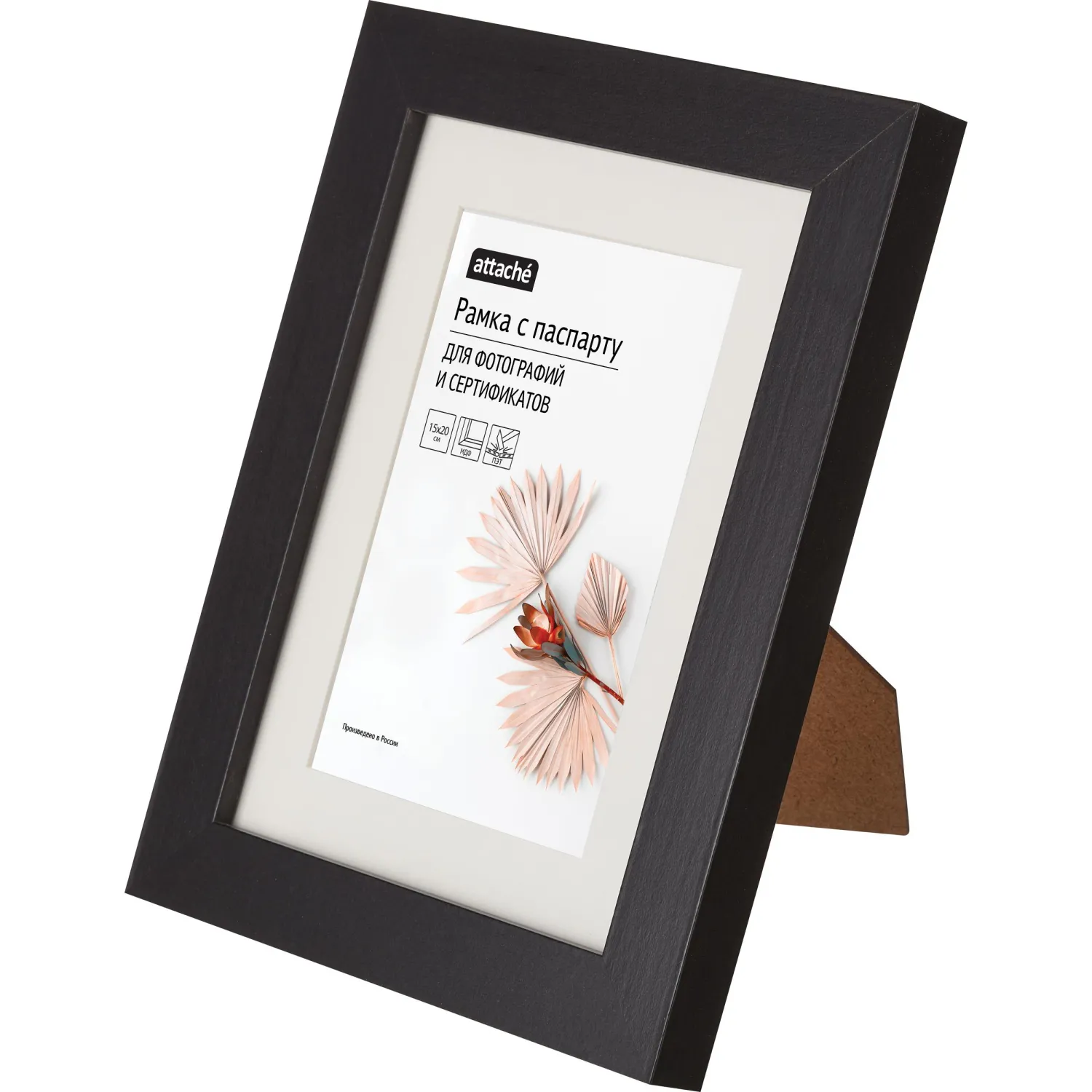 Рамка с паспарту Attache А5 15x20 см МДФ багет 18 мм черная