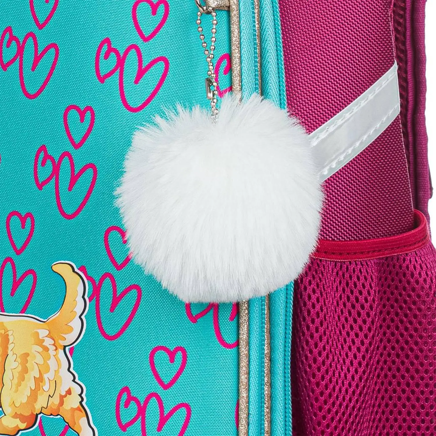 Ранец для девочек анатомический. Прочная конструкция ранца надежно защищает его содержимое за счет плотного формованного материала. Жесткая спинка с мягкими анатомическими вставками с поддержкой в области поясницы. Широкие удобные лямки из воздухообменного сетчатого материала имеют систему регулировки по росту ребенка, что позволяет добиться наиболее комфортного расположения ранца на спине. Ранец оснащен двумя ручками: одна узкая, чтобы вешать на парту, вторая широкая и мягкая, чтобы удобно носить в руке. Плотное, устойчивое дно на ножках. Ранец имеет два основных отдела на молнии. В первом отделении — сетчатый карман. Во втором — гибкая перегородка, предназначенная для удобного хранения книг и тетрадей. Также на ранце по бокам расположены сетчатые карманы для мелких принадлежностей. Светоотражающие элементы на лицевой стороне, боковых частях ранца, а также на лямках. Размер: 280×145×360 мм. Особенности: яркий рисунок-наклейка Корги; надпись золотым глиттером с блестками; брелок-пушок в комплекте.