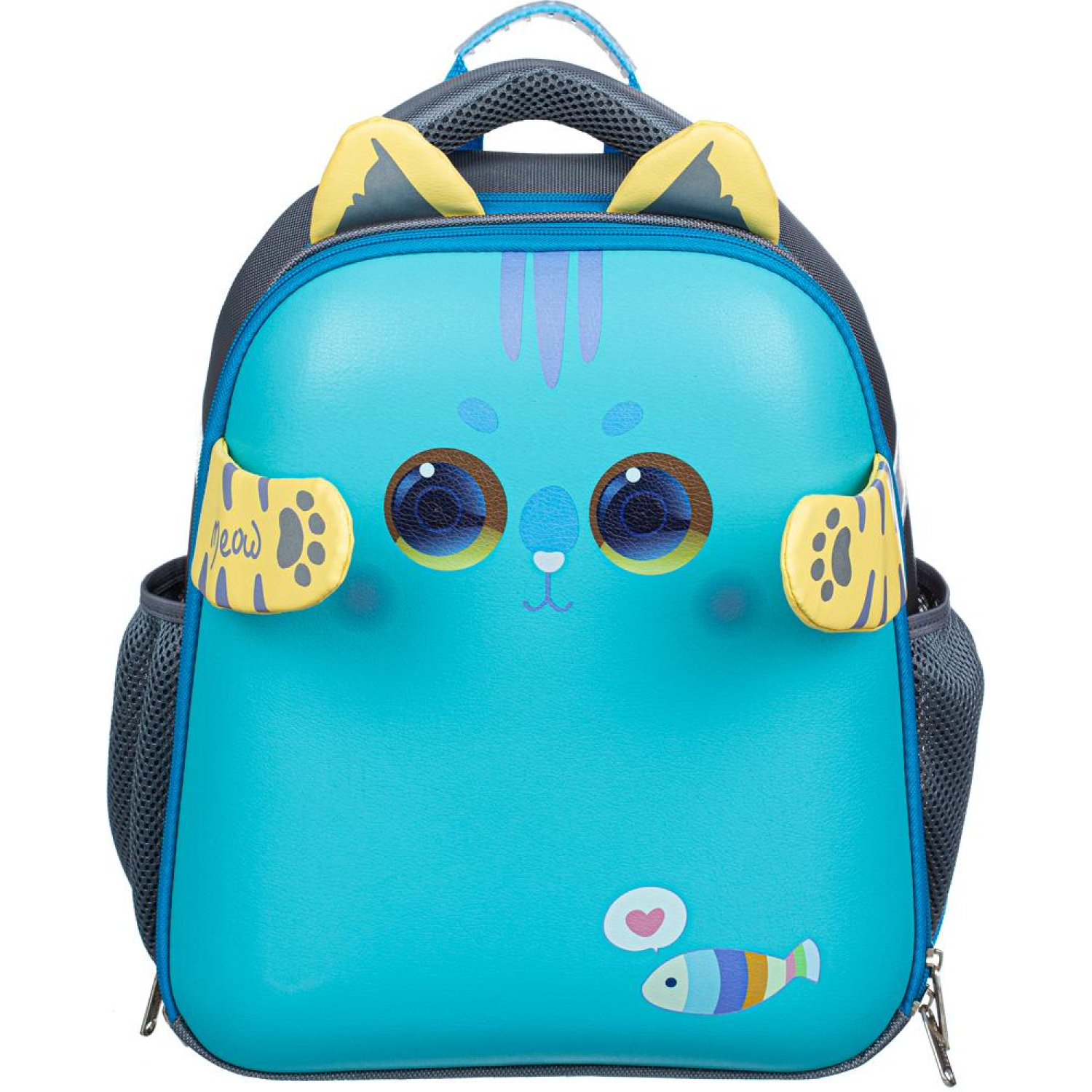 Ранец Комус Класс (№1 School) Котик с рыбкой анатомический серый с двумя отделениями