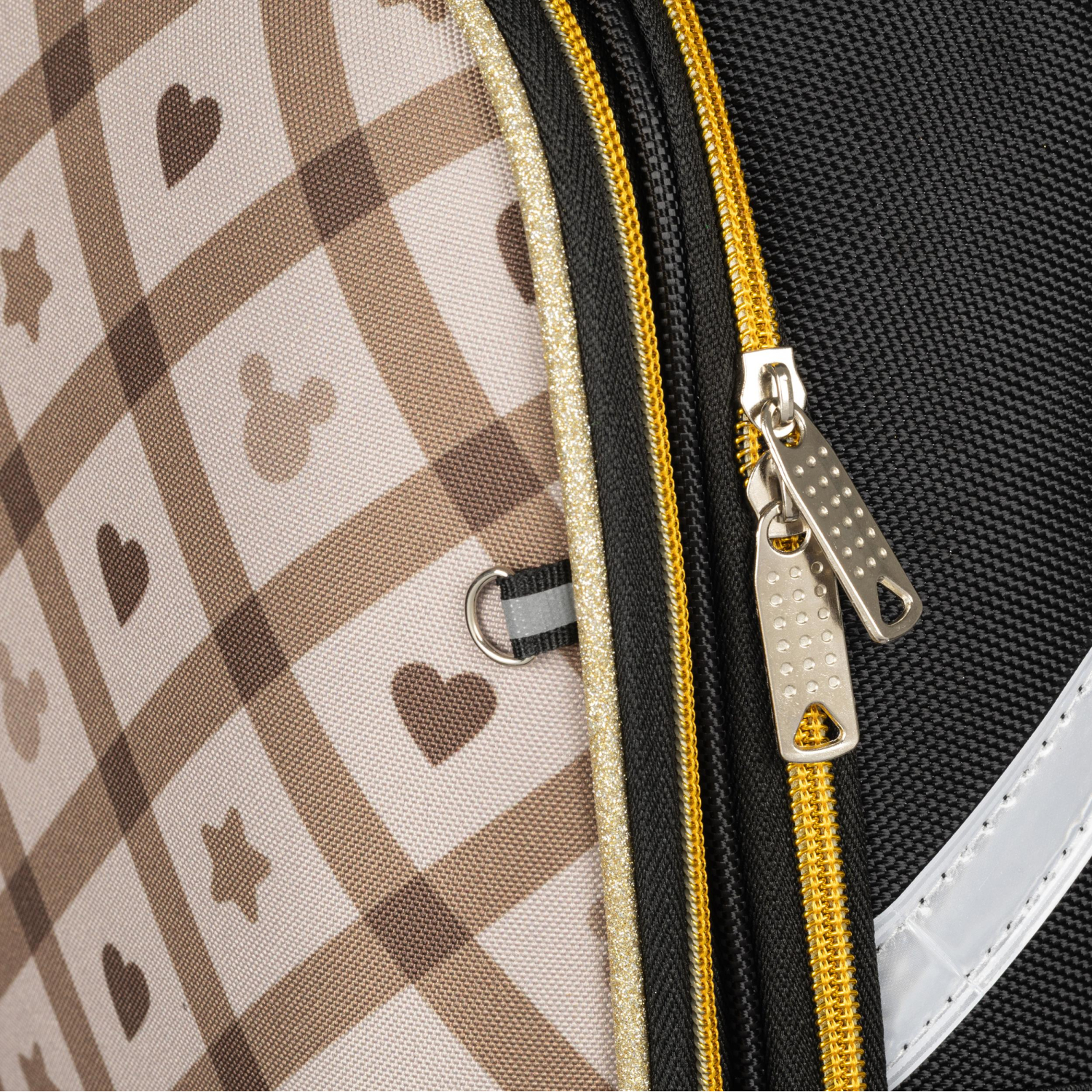 Лямки регулируемые, выполнены из полиэстера с мягкими вставками. Светоотражающие элементы расположены на лямках и боковых частях. Размер рюкзака составляет 28×15×36 см. Дизайн включает рисунок в клетку. Рюкзак подходит для девочек. Базовый цвет — бежевый. Объём — 11 л, вес — 0,7 кг. Страна производства: Россия.