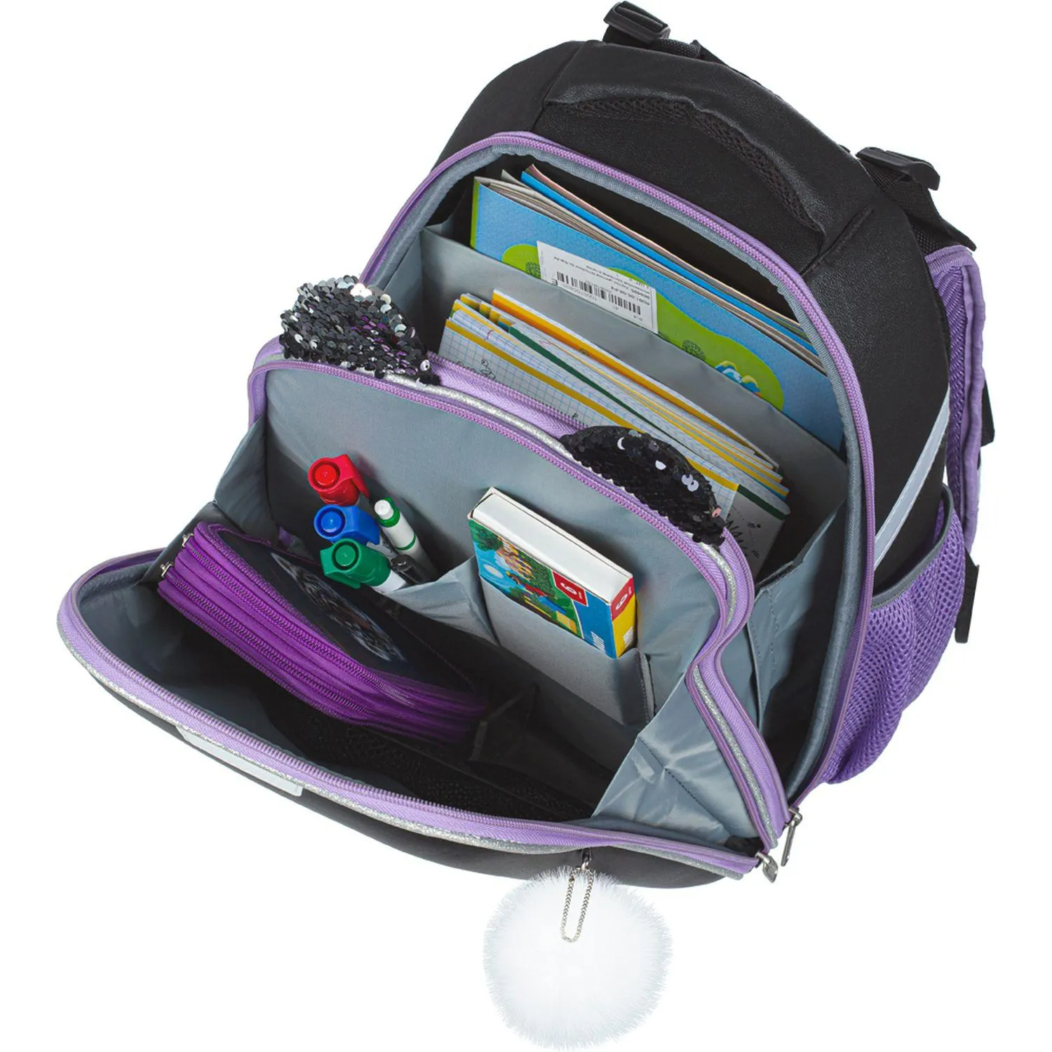 Ранец Комус Класс (№1 School) Kitty Black анатомический черный экокожа с двумя отделениями