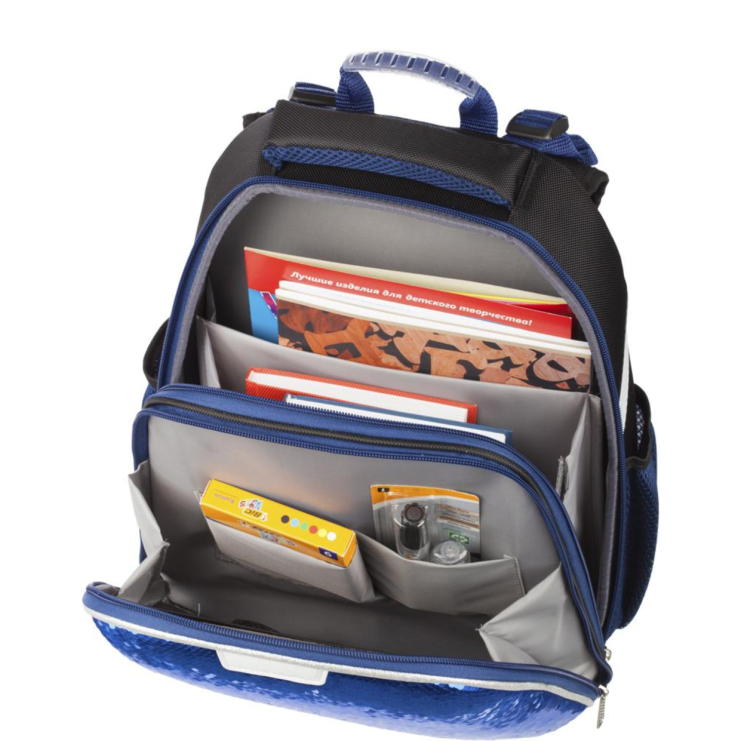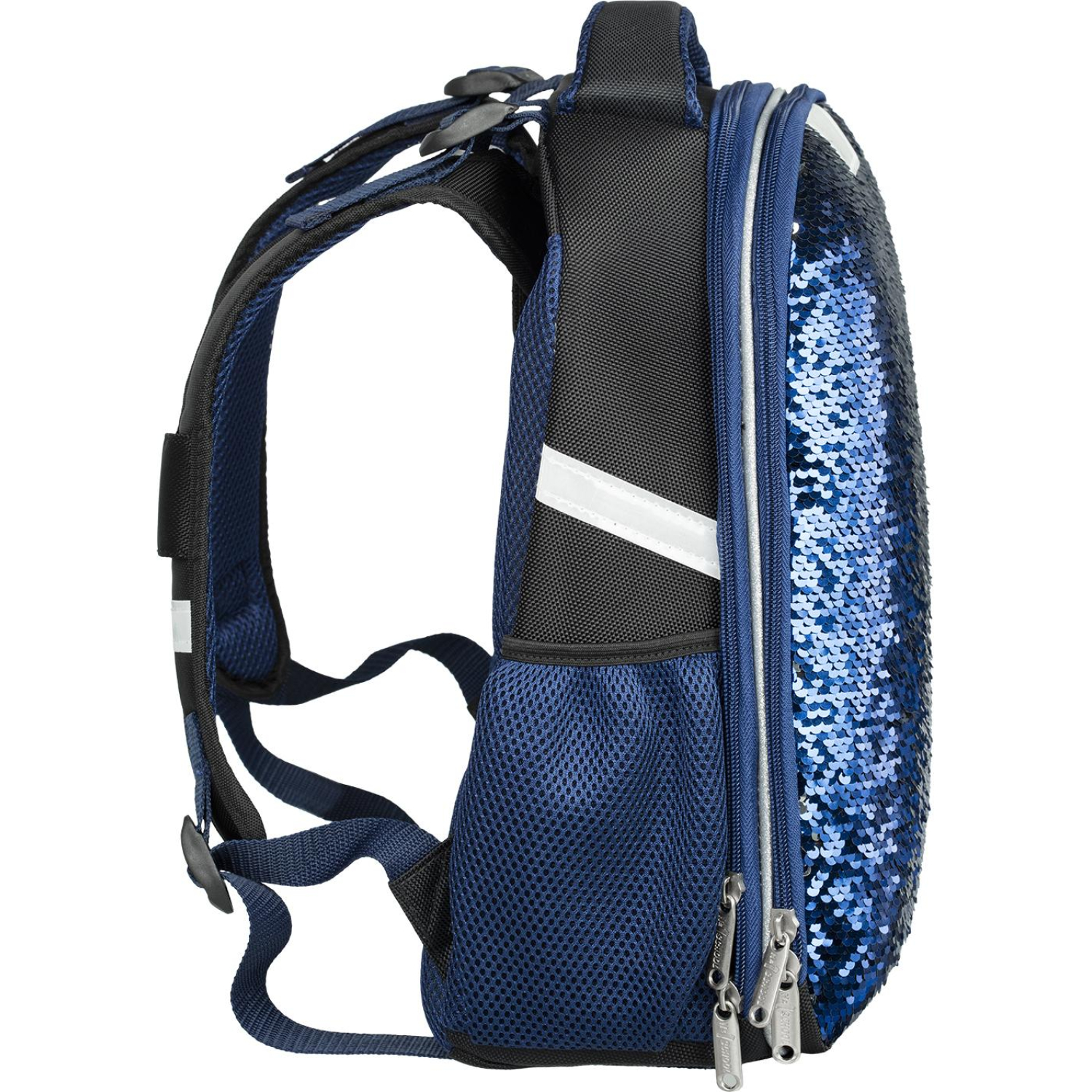 О товаре «Ранец Комус Класс (№1 School) Sparkle Blue анатомический синий пайетки двусторонние с двумя отделениями»