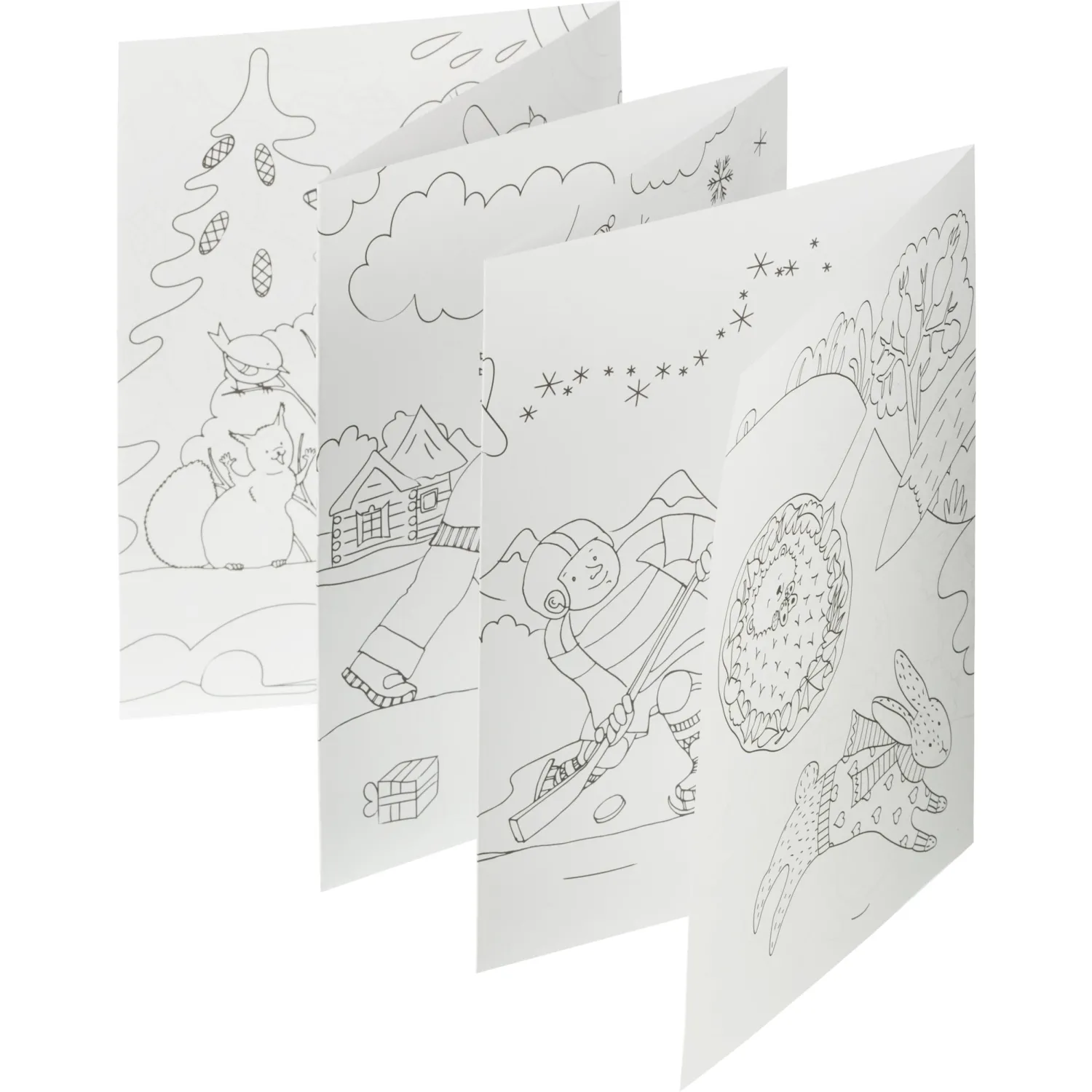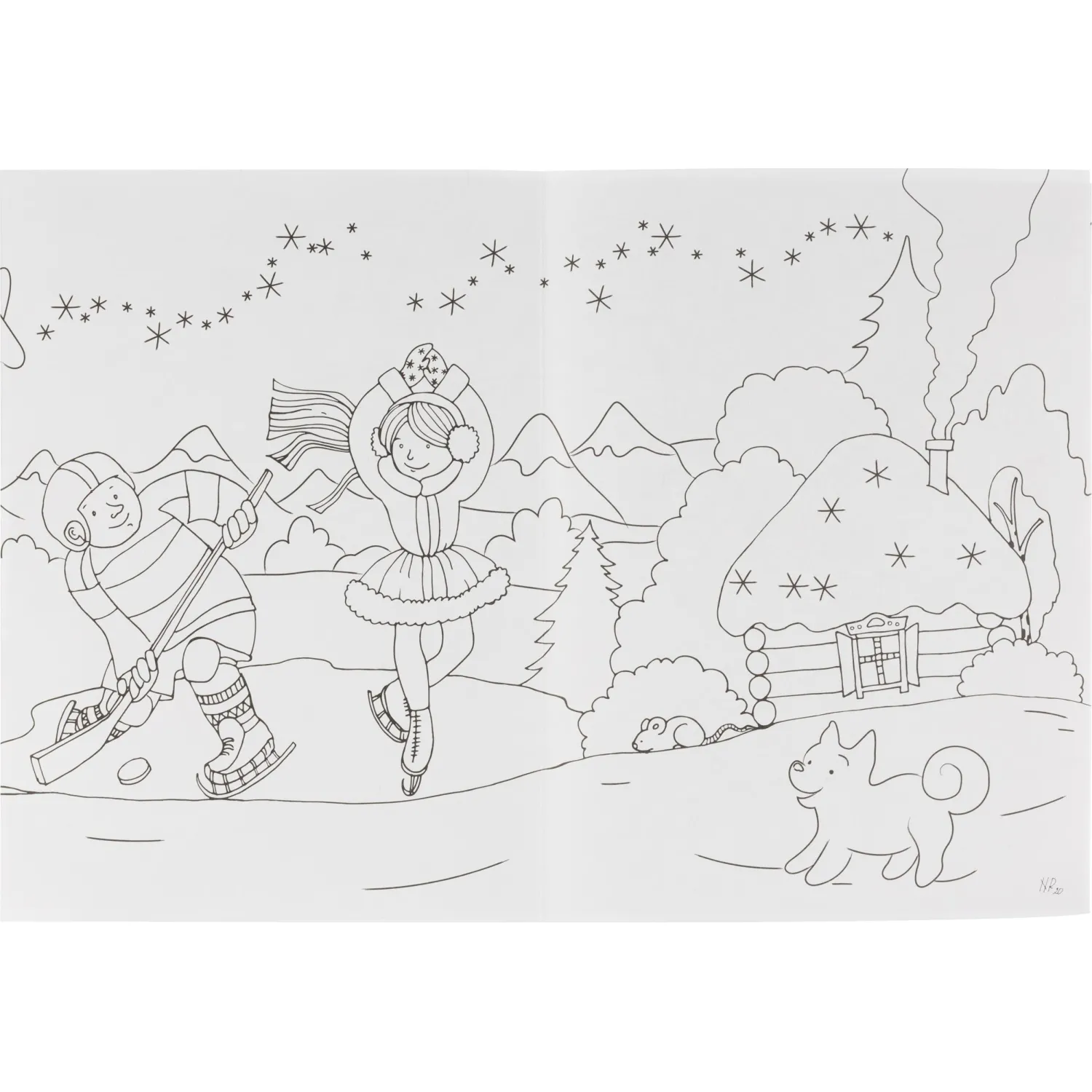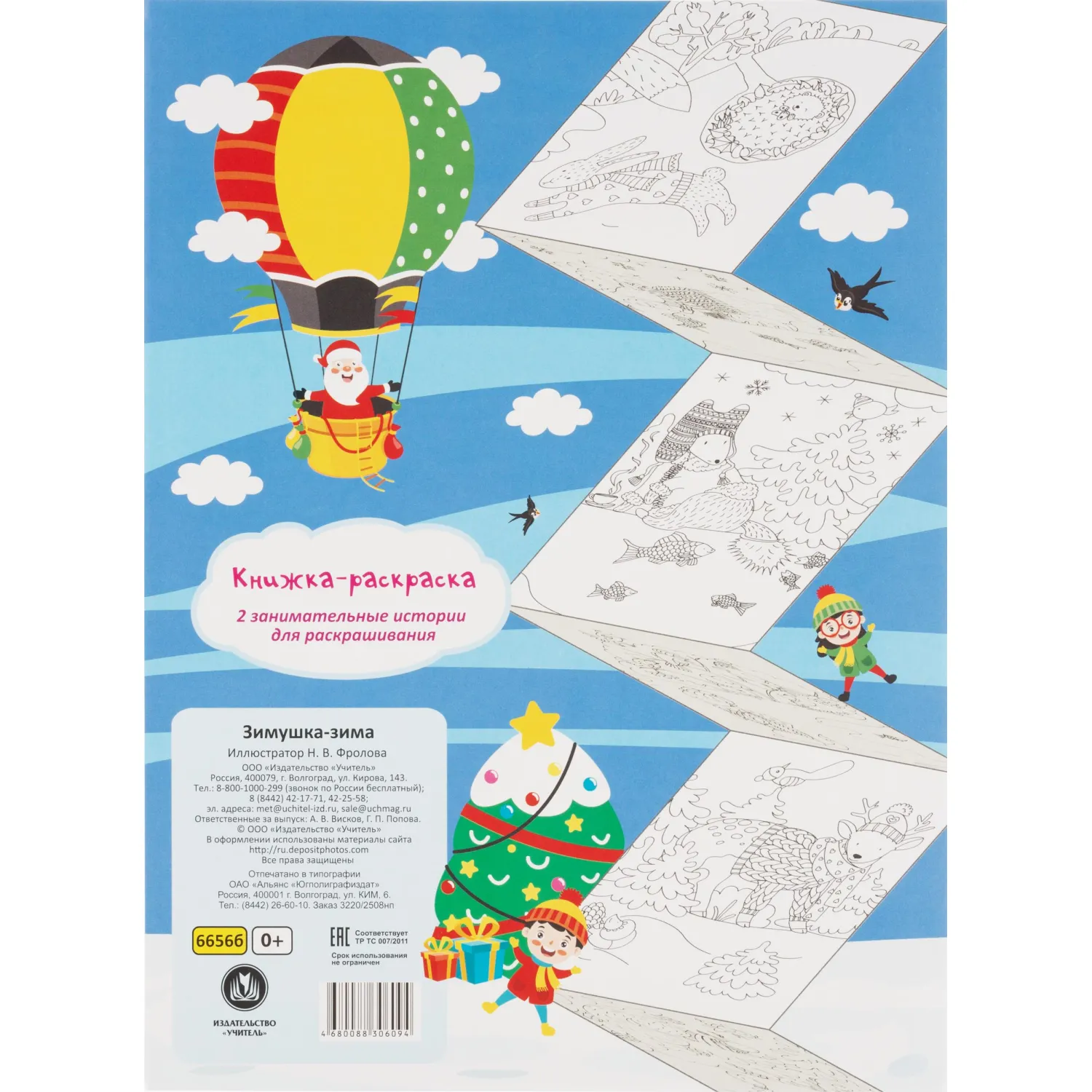 Раскраска-гармошка формата А4 посвящена зимней тематике. Необычная конструкция позволяет раскладывать книжку в длинное полотно с единой сюжетной линией. Двусторонние изображения поддерживают интерес ребёнка на протяжении всего процесса раскрашивания и удобны для совместного творчества в компании. Раскраска напечатана на офсетной бумаге плотностью 120 г/кв.м и имеет мягкую обложку. Для работы подойдут карандаши и цветные ручки. Издание предназначено для детей с раннего возраста (0+). Страна производства — Россия.
