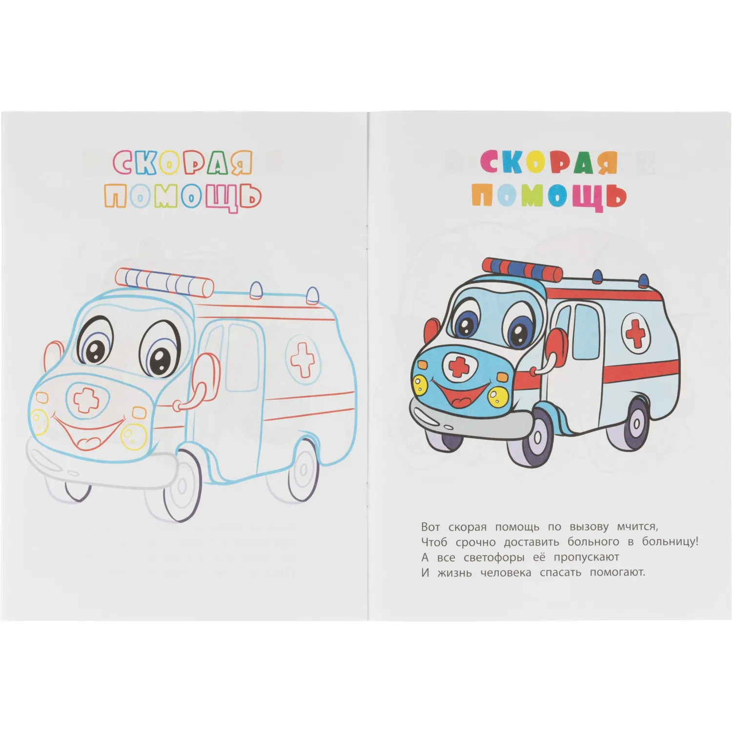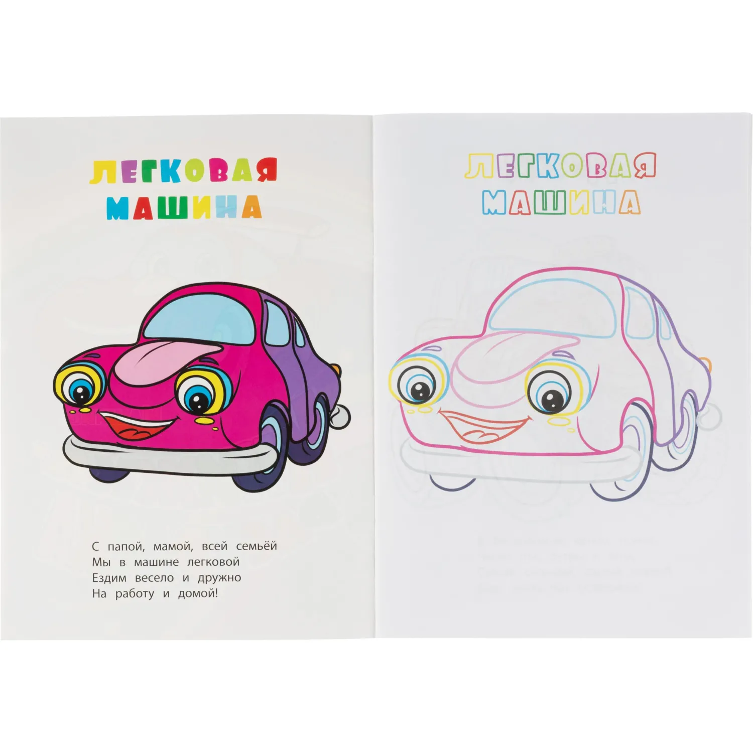 Раскраска формата А4 содержит 12 страниц с изображениями транспорта. Простые контуры и картинки-образцы помогают ребёнку правильно подбирать цвета, а детские стишки делают занятие интересным и познавательным. Работа с раскраской развивает фантазию, воображение и мелкую моторику, а также способствует освоению речевых навыков. Книга выполнена на офсетной бумаге плотностью 80 г/кв.м и оформлена в мягкой обложке. Для раскрашивания подойдут карандаши и цветные ручки. Издание предназначено для детей с раннего возраста (0+). Страна производства — Россия.
