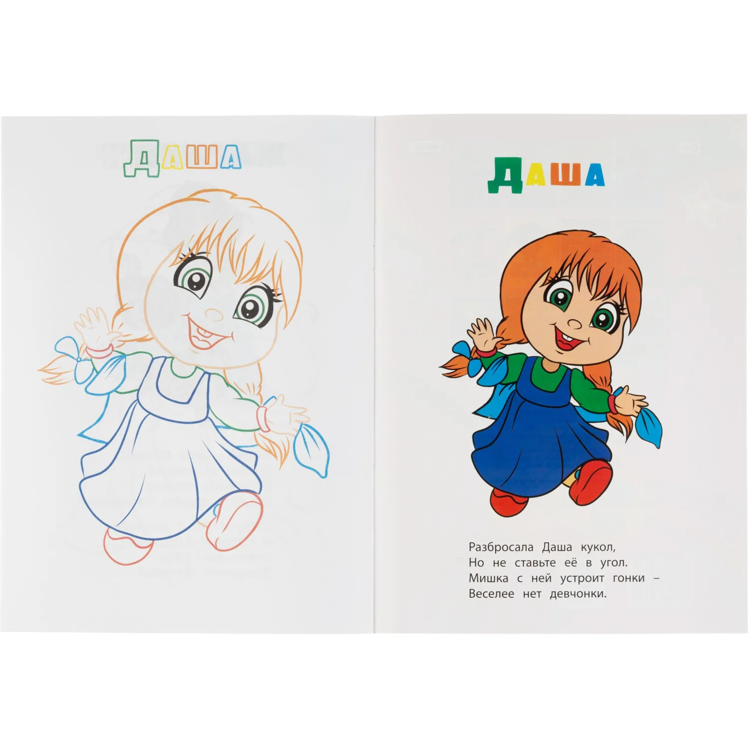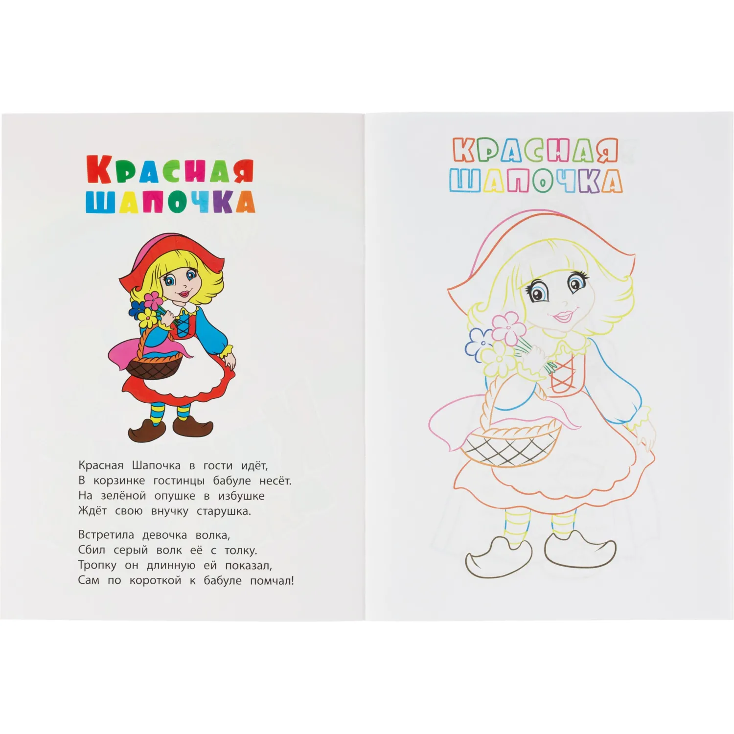 Раскраска формата А4 включает 12 страниц с изображениями мультяшных персонажей. Простые контуры и картинки-образцы помогают ребёнку ориентироваться в цветах, а детские стишки делают процесс увлекательным и познавательным. Раскрашивание развивает фантазию, образное мышление, тренирует руку и способствует освоению речевых навыков. Книга напечатана на офсетной бумаге плотностью 80 г/кв.м и оформлена в мягкой обложке. Для работы подойдут карандаши и цветные ручки. Издание предназначено для детей с раннего возраста (0+). Страна производства — Россия.
